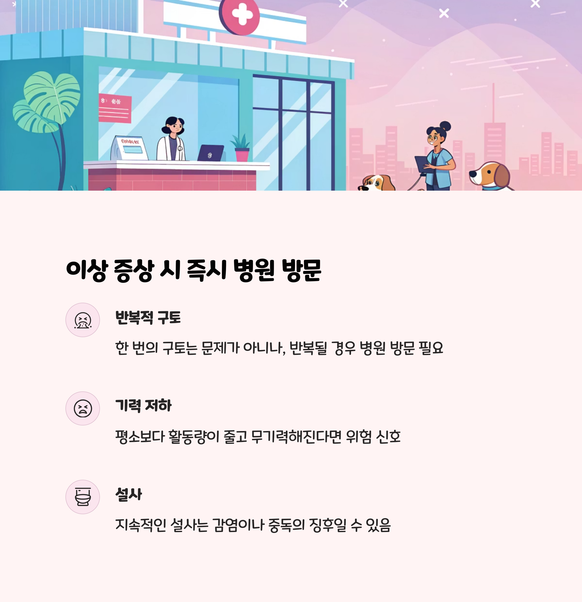 반복적 구토나 이상 증상 시 즉시 병원 방문