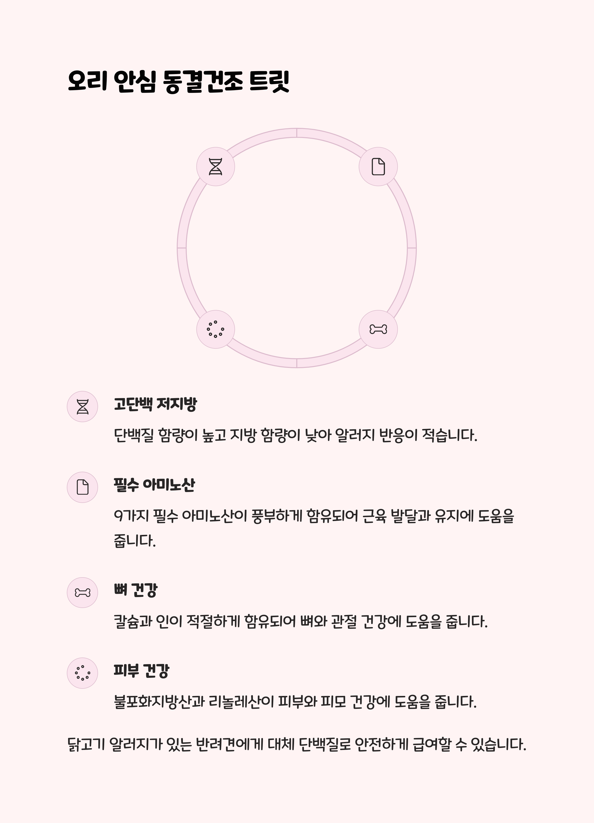 • 추천 대상 : 닭, 소고기 알러지가 있거나, 피부가 민감한 강아지