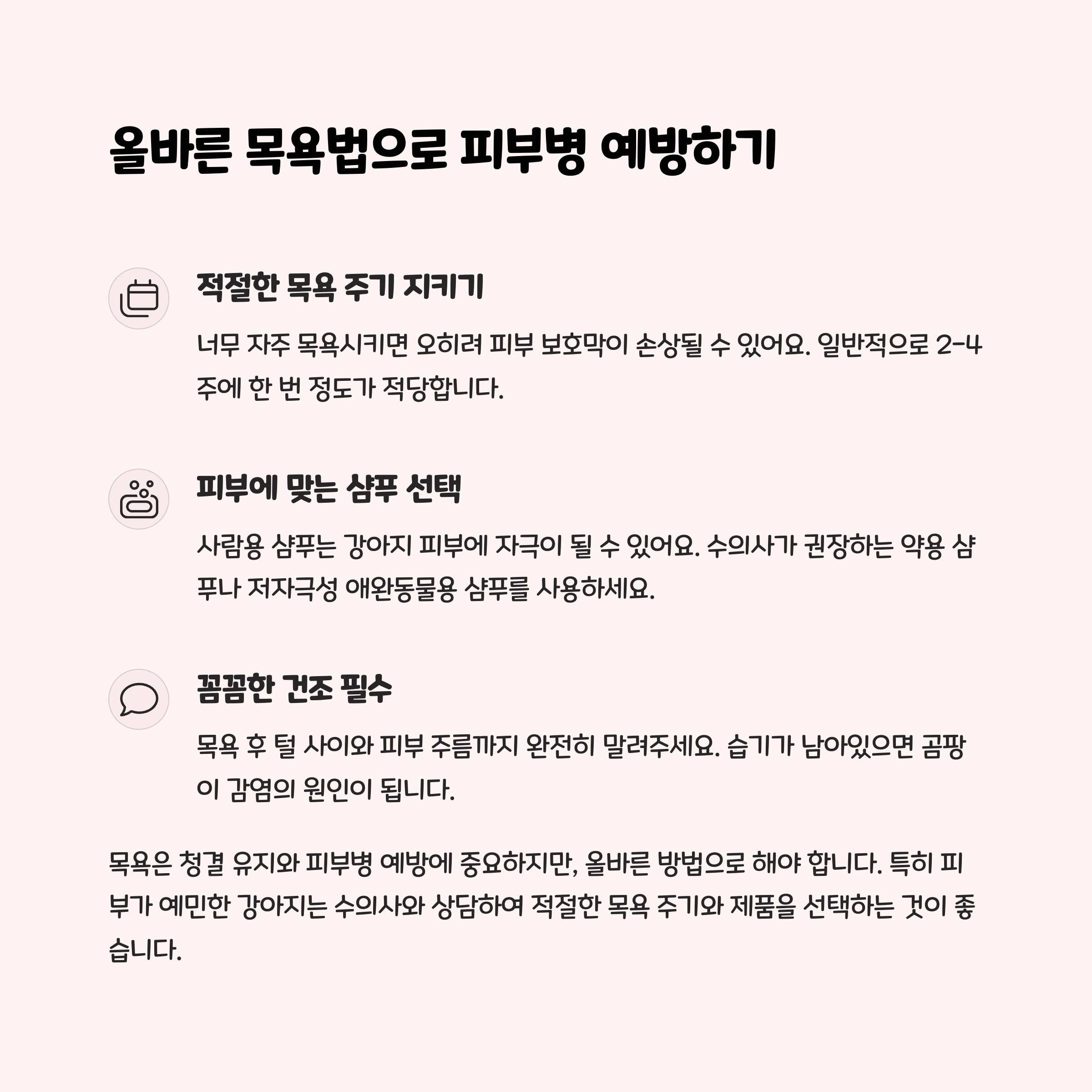 • 목욕 후에는 털과 피부를 완전히 건조시키는 것이 중요합니다.