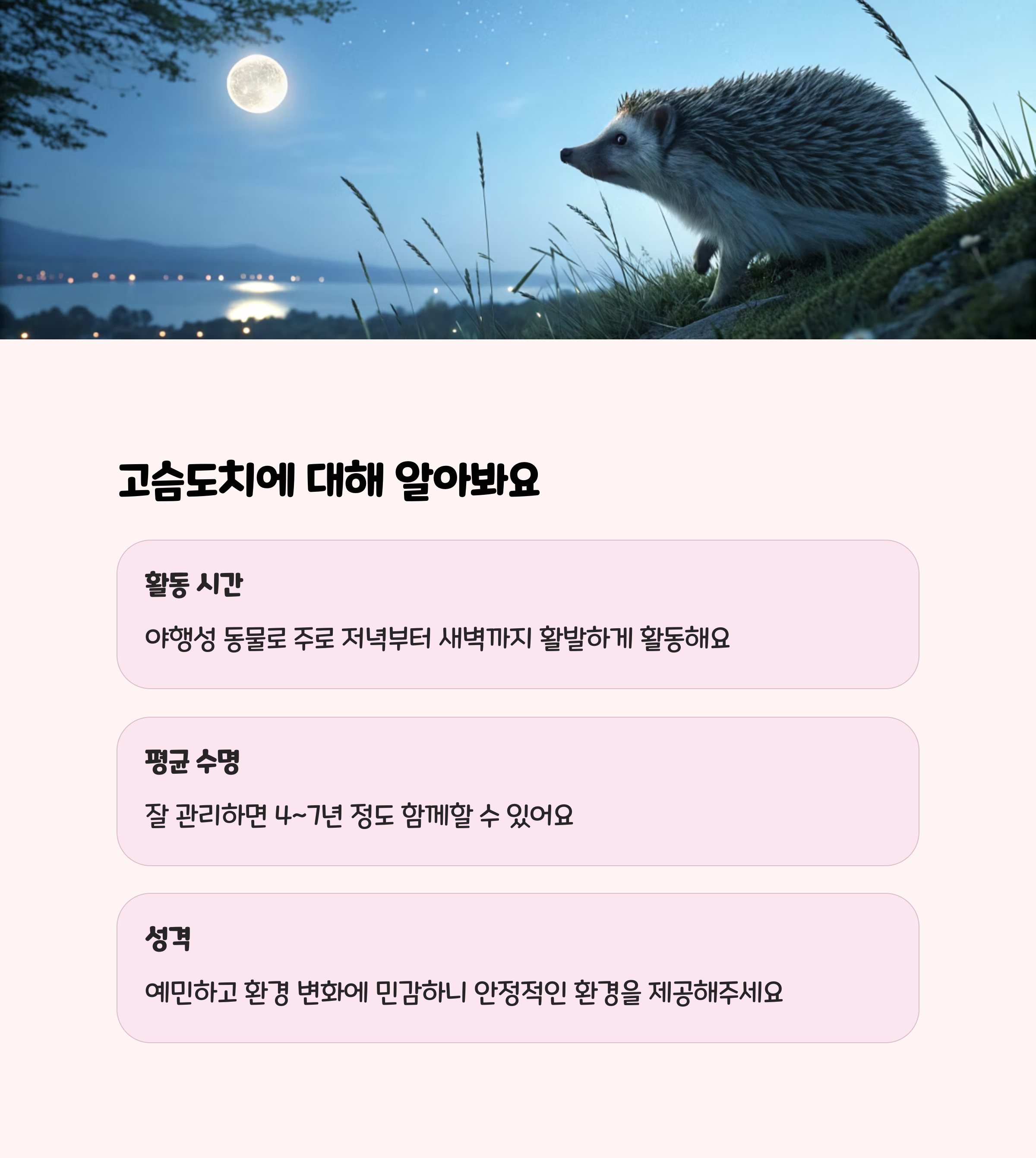 | 고슴도치 야행성 특징과 밤에 조용히 키우는 방법 (4) | 2025.08.06 |