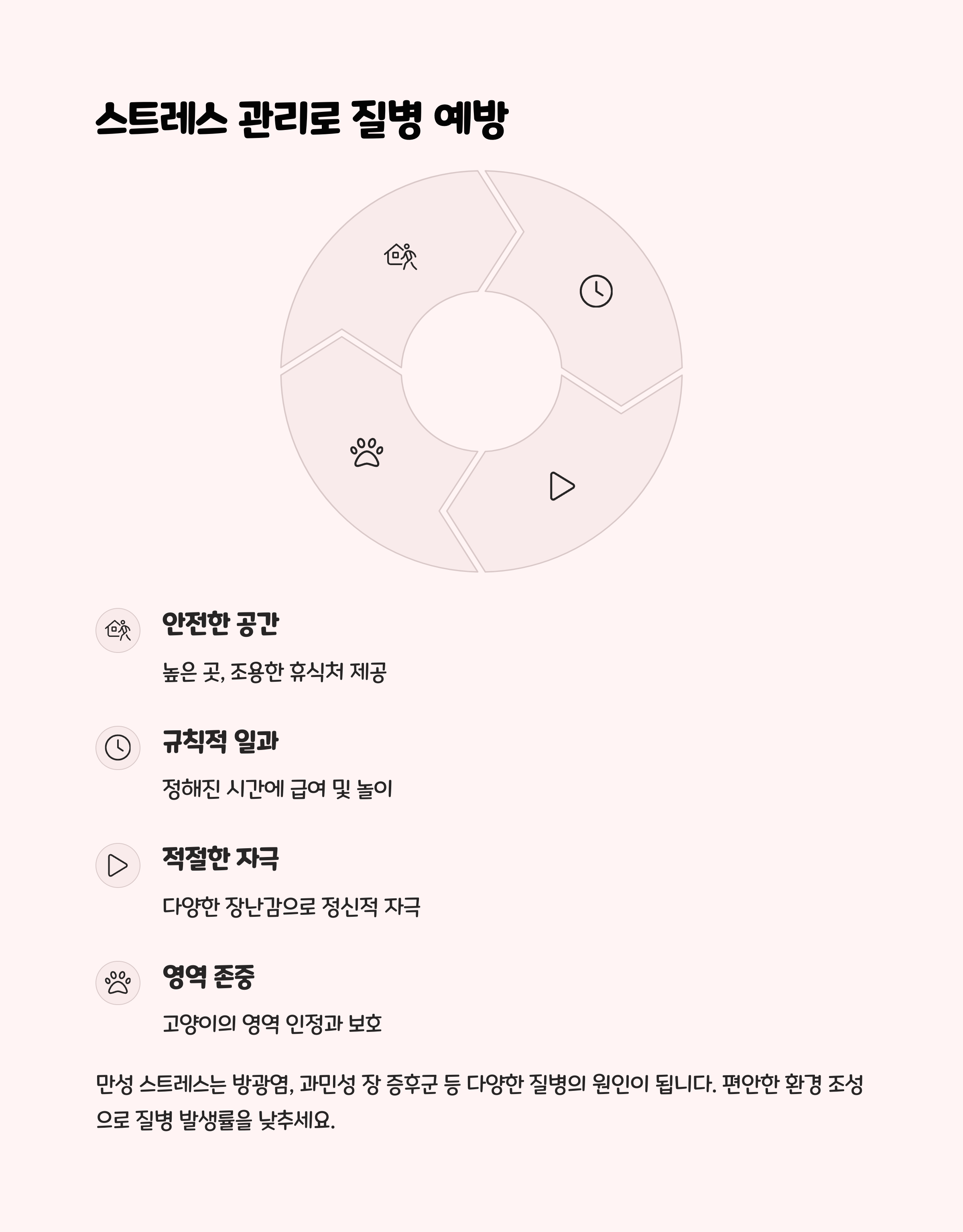 실천 팁 : 고양이가 자주 숨는 장소를 확인하고 그곳을 휴식처로 꾸며주세요.