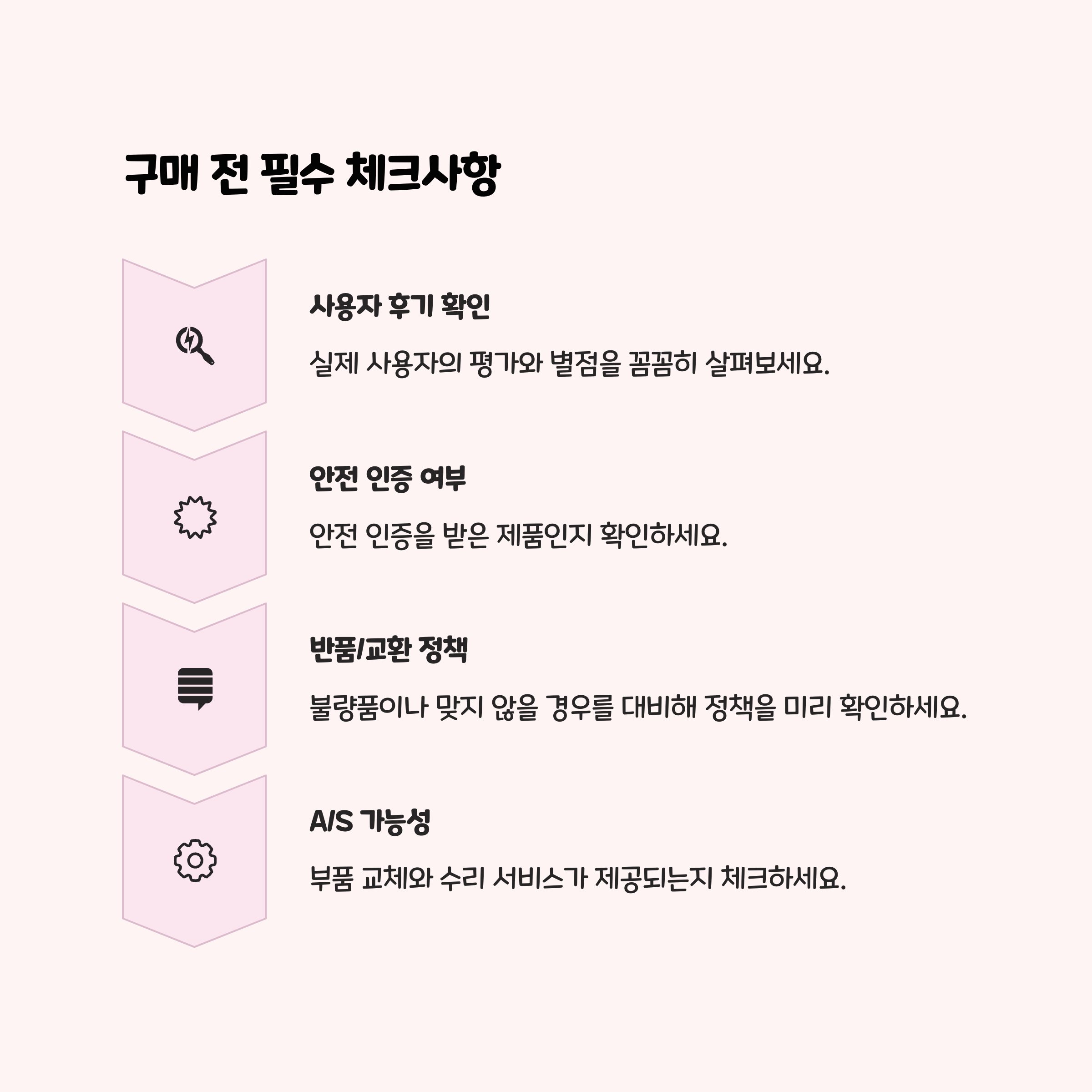 - 통풍구 위치와 크기 : 메시형은 3면 이상, 투명창은 충분한 공기구멍이 있는지 체크.