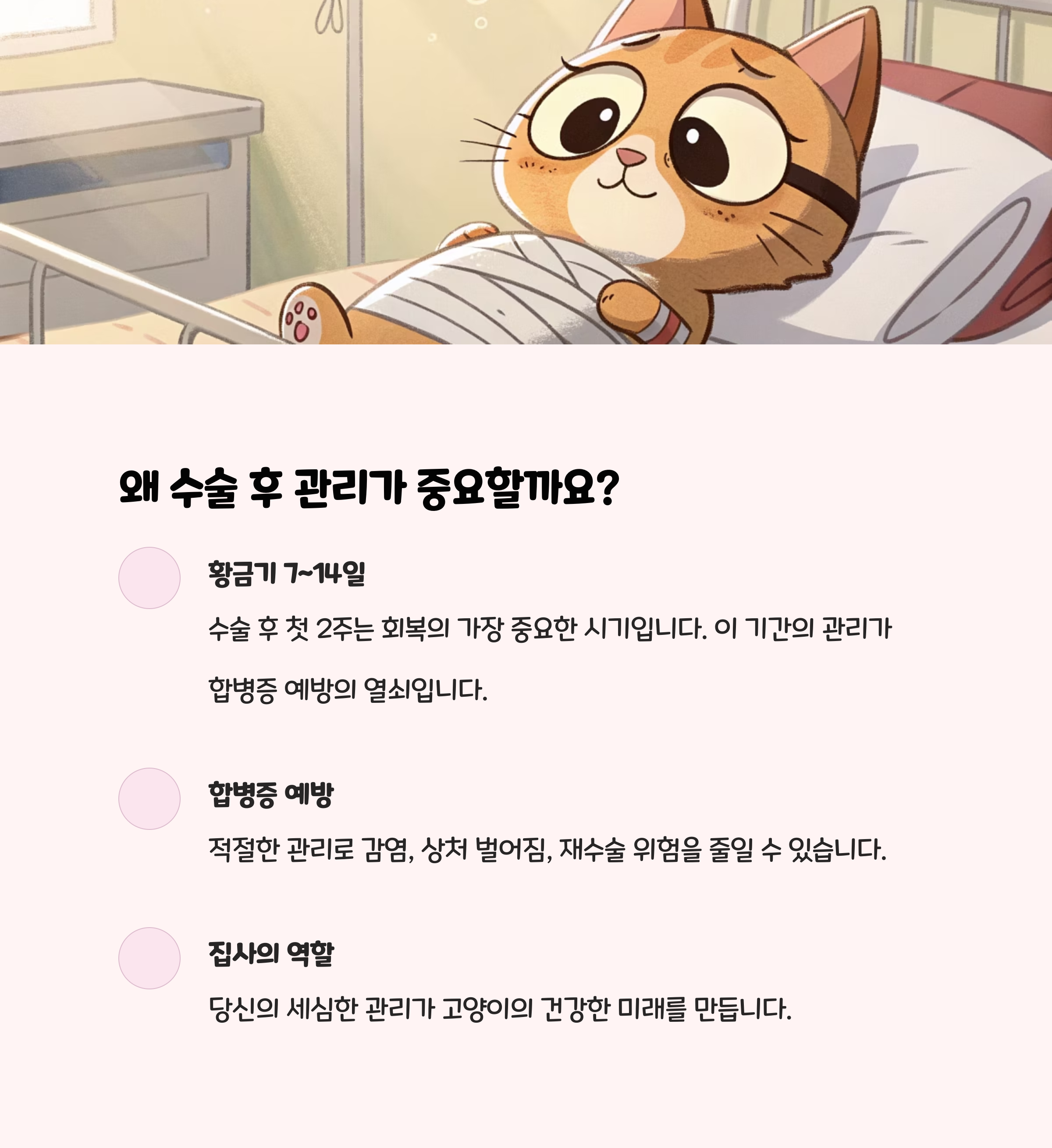 2. 수술 직후, 집사가 꼭 지켜야 할 5가지 관리 원칙