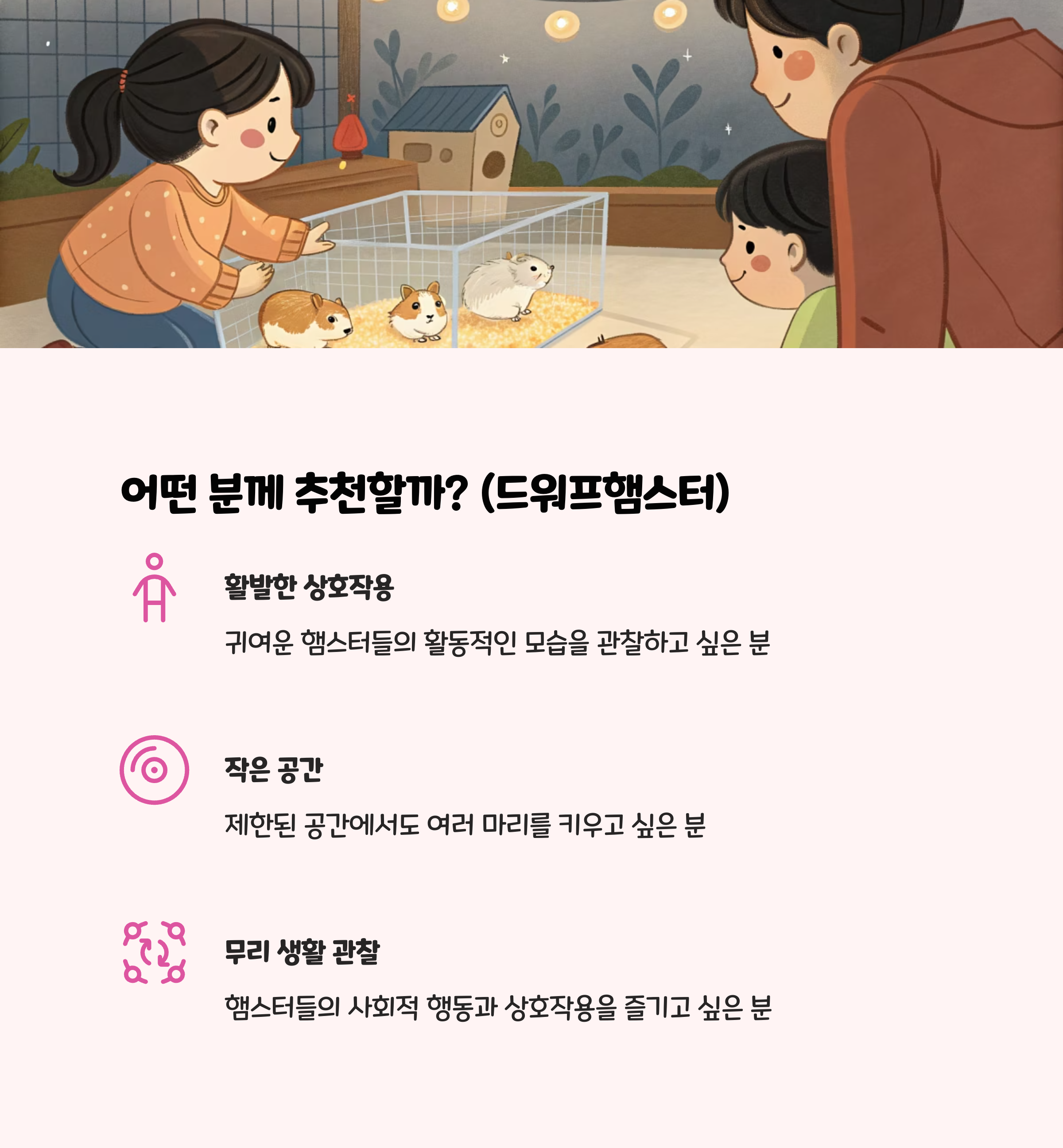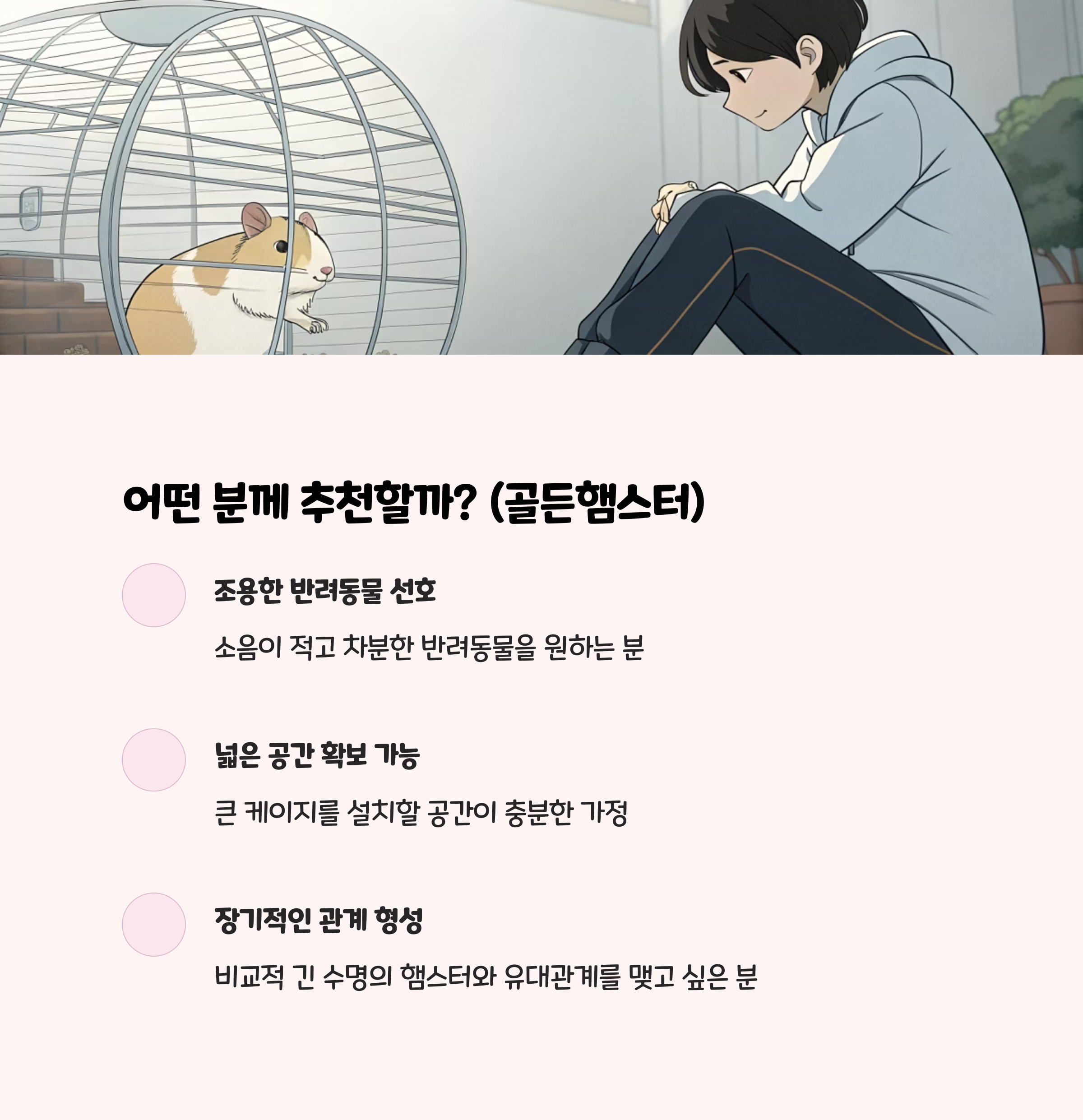| 기준 | 골든햄스터 추천 | 드워프햄스터 추천 |