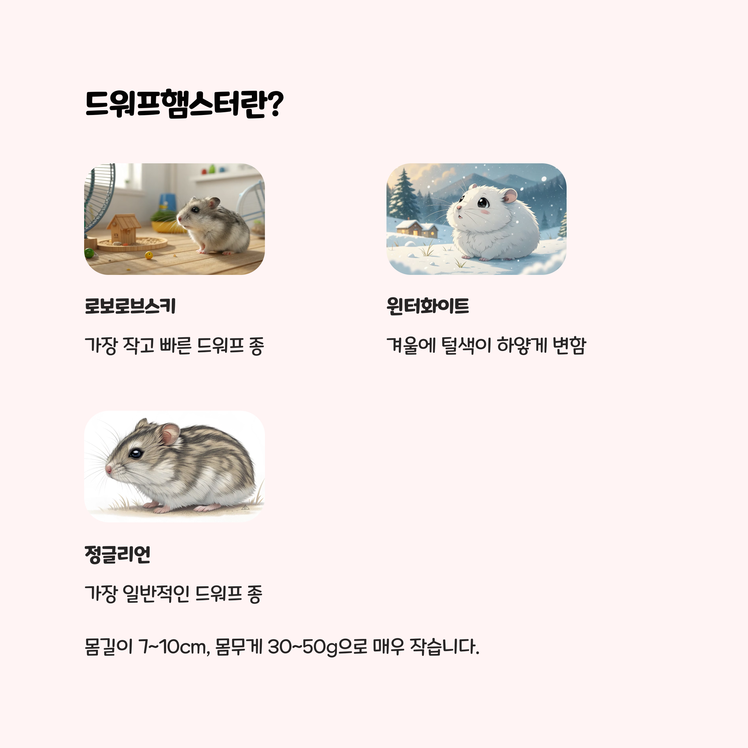 | 초보자를 위한 햄스터 종류별 특징과 맞춤 관리법 완벽 가이드 (3) | 2025.08.16 |