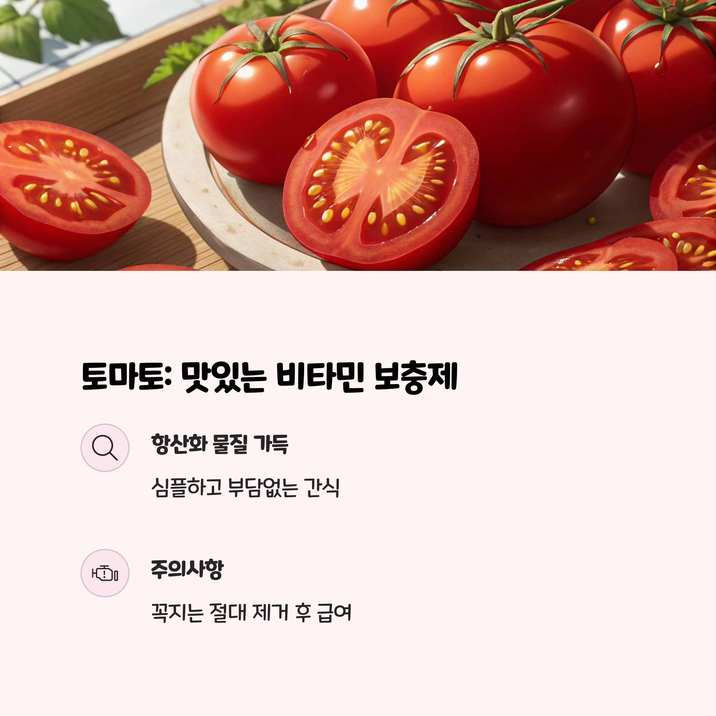 - 비타민 C와 수분이 풍부하지만, 씨와 꼭지는 제거 후 급여하세요.