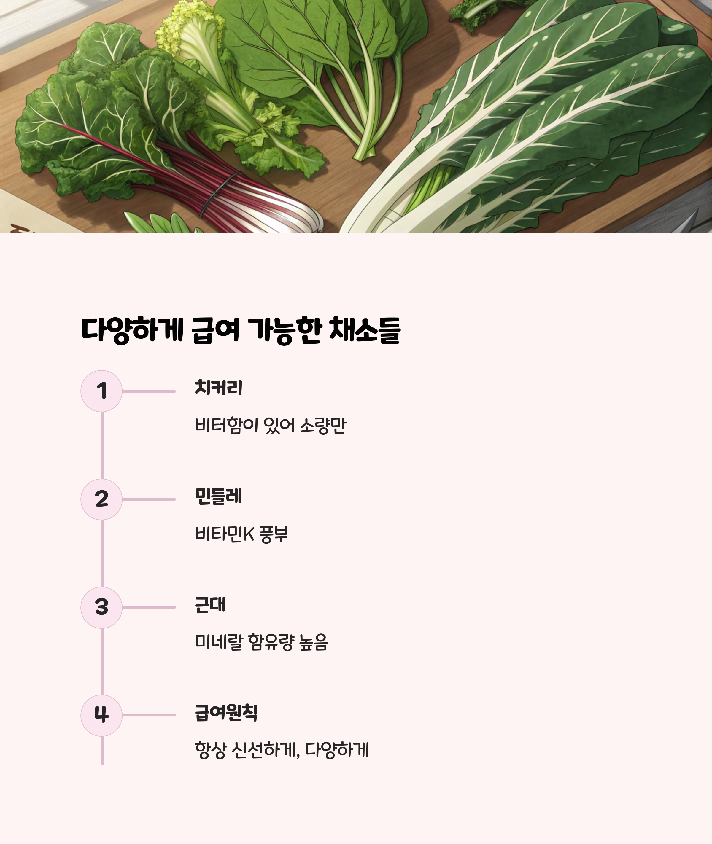 - 새로운 채소는 소량부터 시작해 알레르기나 소화불량 반응을 확인하세요.