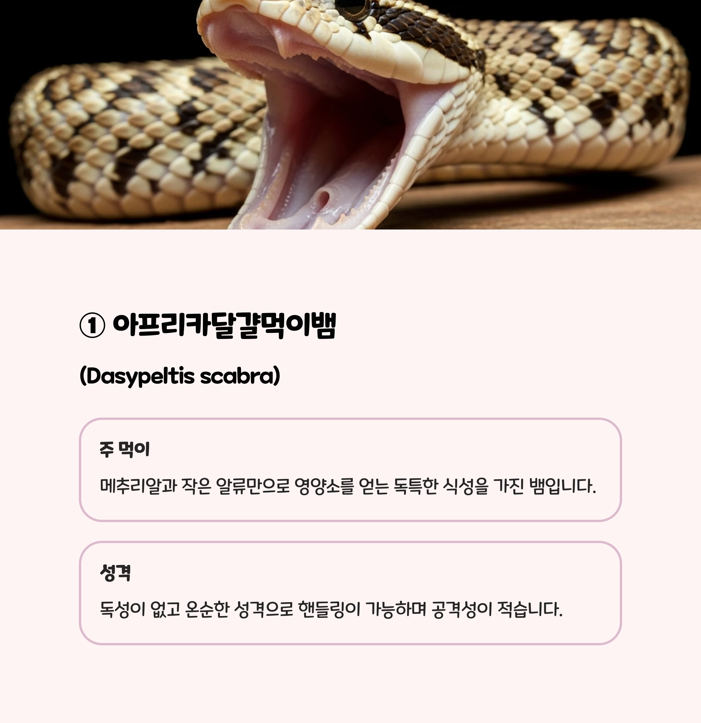 | 한국에서 인기 있는 입문용 뱀 종 비교와 추천 (1) | 2025.07.28 |