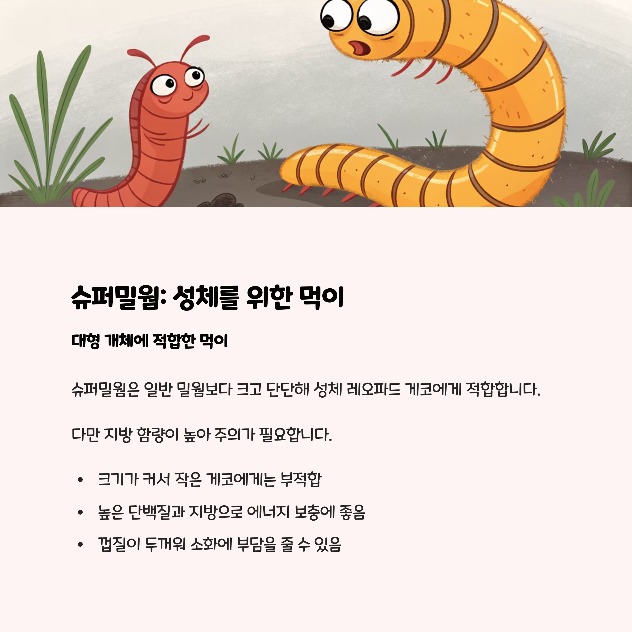 - 지나치게 큰 밀웜은 위장에 무리를 줄 수 있음