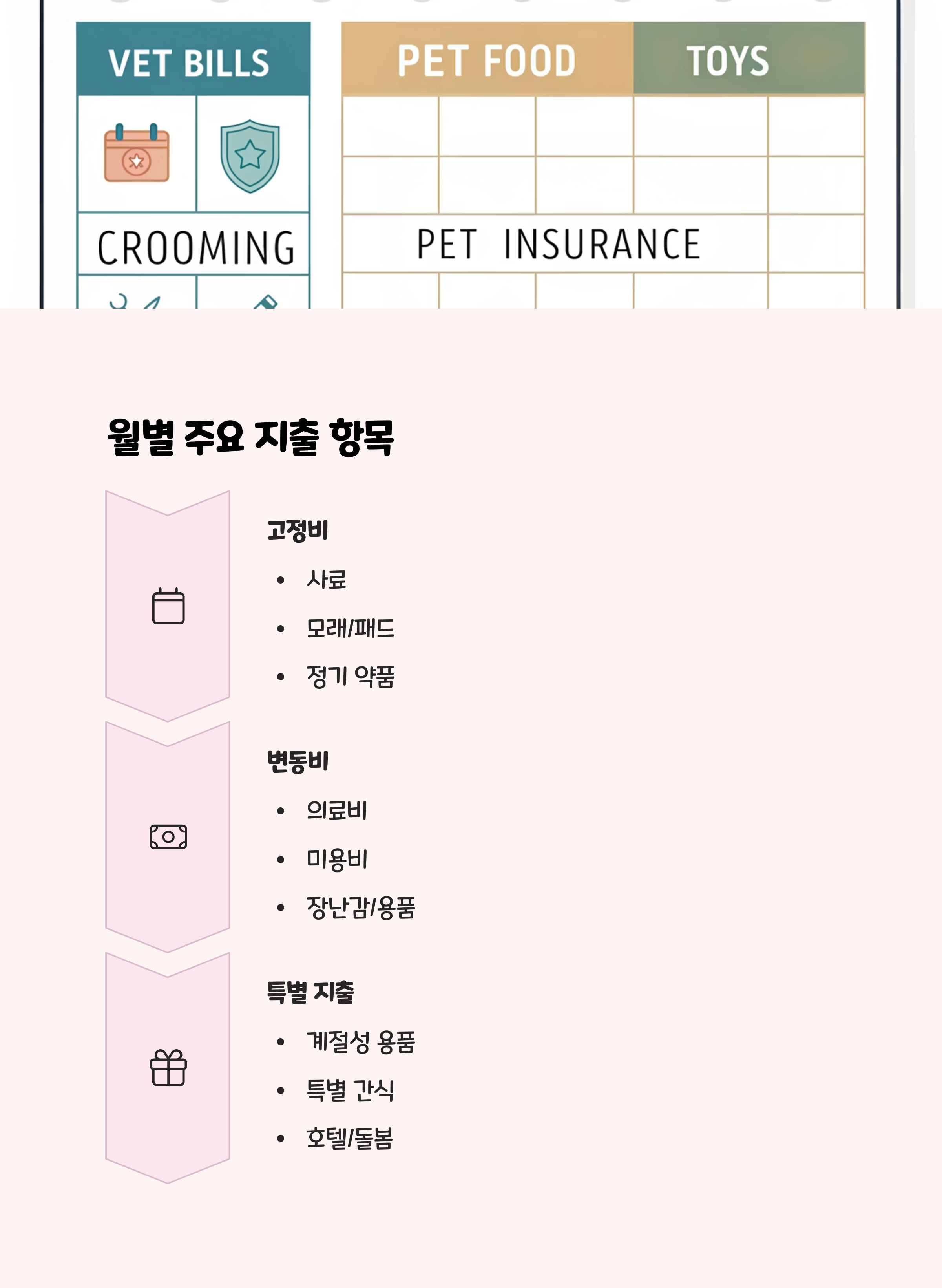 지출 내역 꼼꼼히 기록: 반려동물 가계부나 전용 앱을 활용해 월별 지출을 파악하세요. 불필요한 소비를 줄이고, 꼭 필요한 항목에만 예산을 배분하는 것이 중요합니다.전용 통장 활용: 반려동물 전용 통장을 만들어 지출을 관리하면 충동구매를 막고, 의료비 등 비상시를 대비한 저축도 가능합니다.