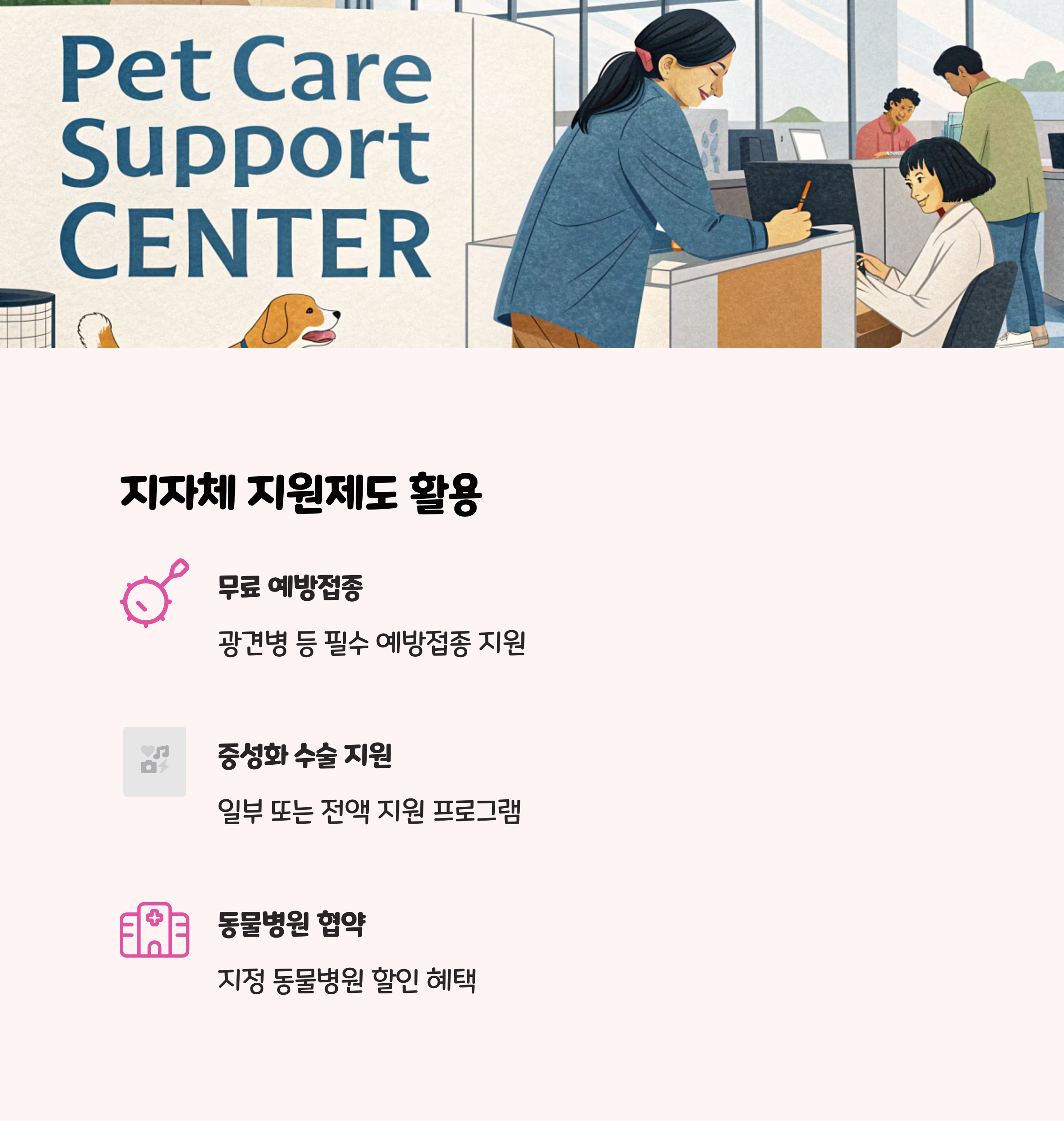 중성화, 예방접종 등 의료비 지원사업은 거주지 행정복지센터나 시·군·구청 홈페이지에서 신청할 수 있습니다. 자격 요건과 지원 한도를 미리 확인하고, 필요한 서류를 준비해 신청하면 됩니다.