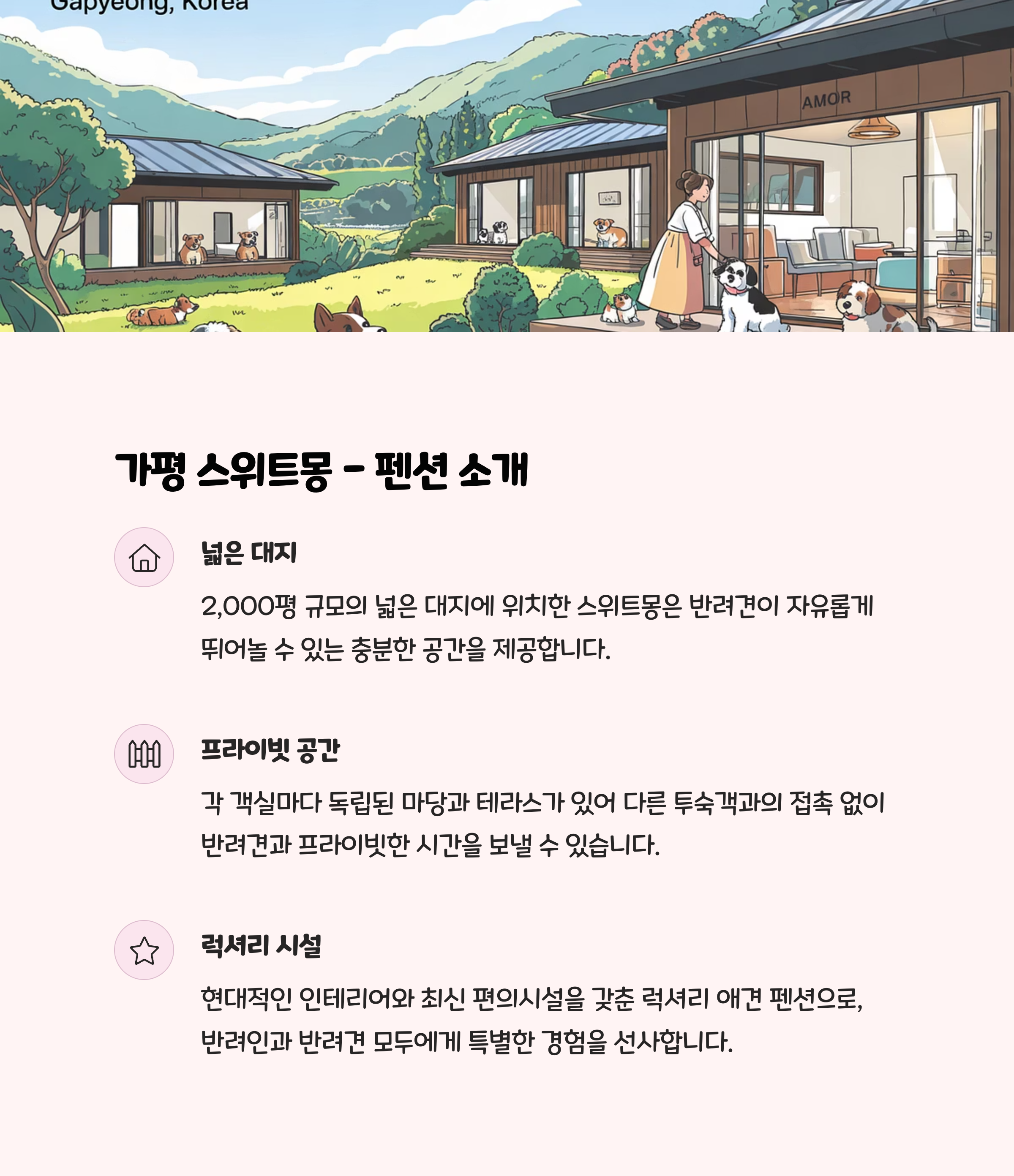 - 각 객실 개별 바비큐, 반려견 목욕시설