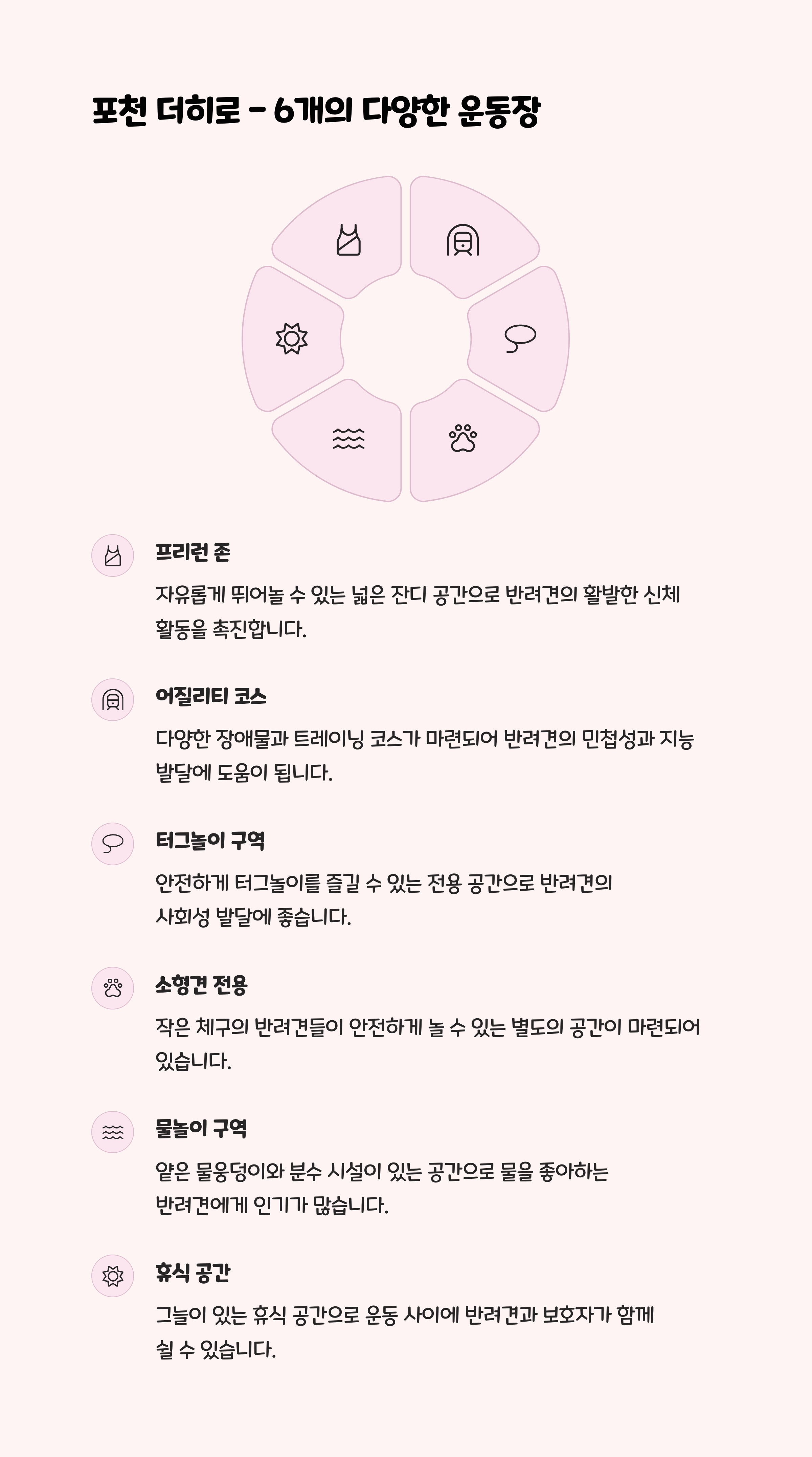서울 근교 포천에 위치한 ‘더히로 플레이그라운드’는 총 6개의 대형 잔디 운동장과 수심별로 나누어진 강아지 전용 수영장이 특징입니다. 날씨 좋은 날에는 야외 수영장에서 신나게 물놀이를, 비가 오거나 추운 날에는 실내 운동장에서 에너지를 발산할 수 있습니다. 카라반과 펜션형 숙소 모두 마련되어 있어, 취향에 따라 선택 가능하며, 각 룸 앞에서 바로 바비큐와 불멍을 즐길 수 있습니다. 반려견과 보호자 모두가 스트레스를 날릴 수 있는 힐링 플레이스로, 실제 이용자들의 재방문율도 매우 높습니다.