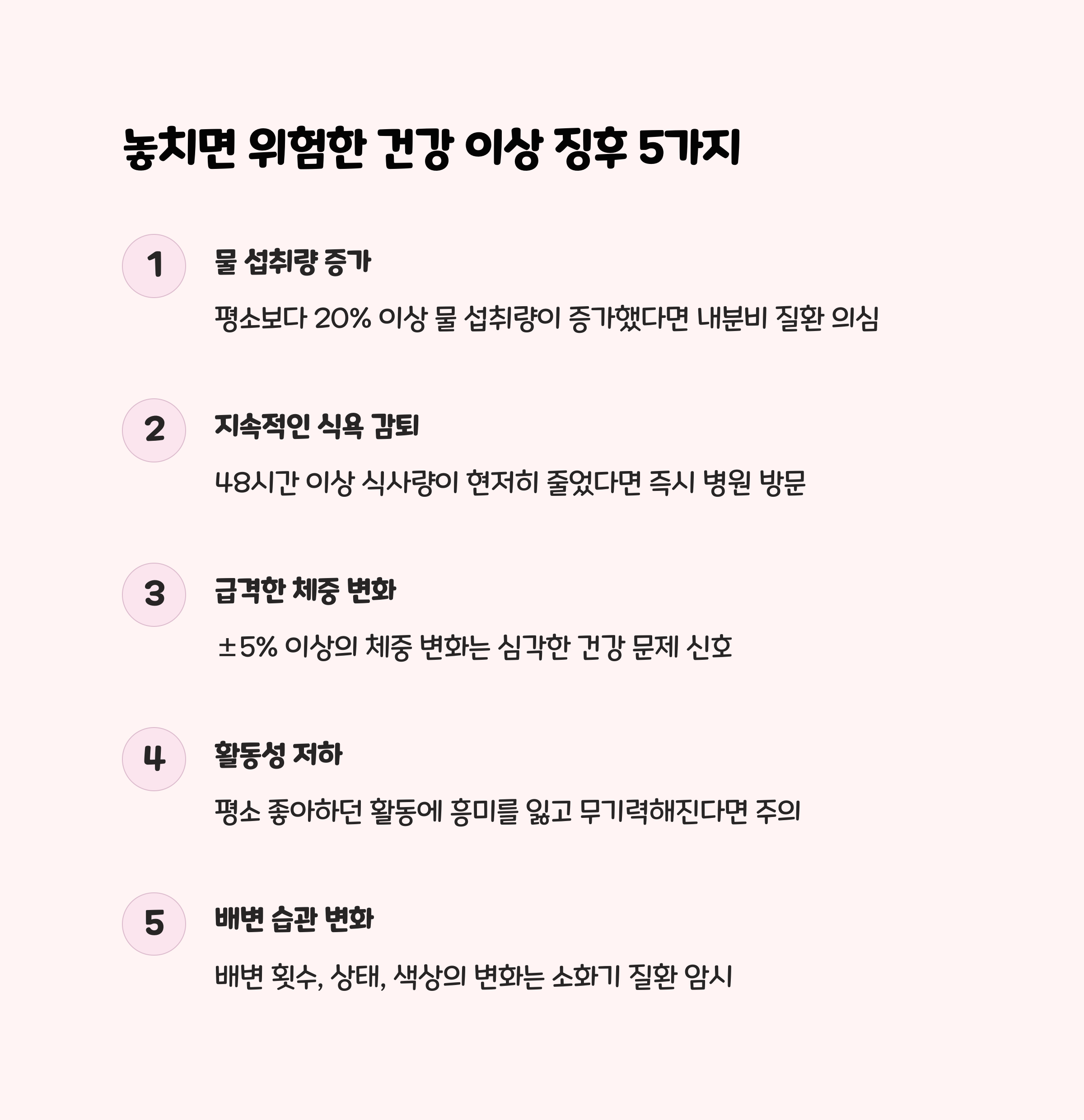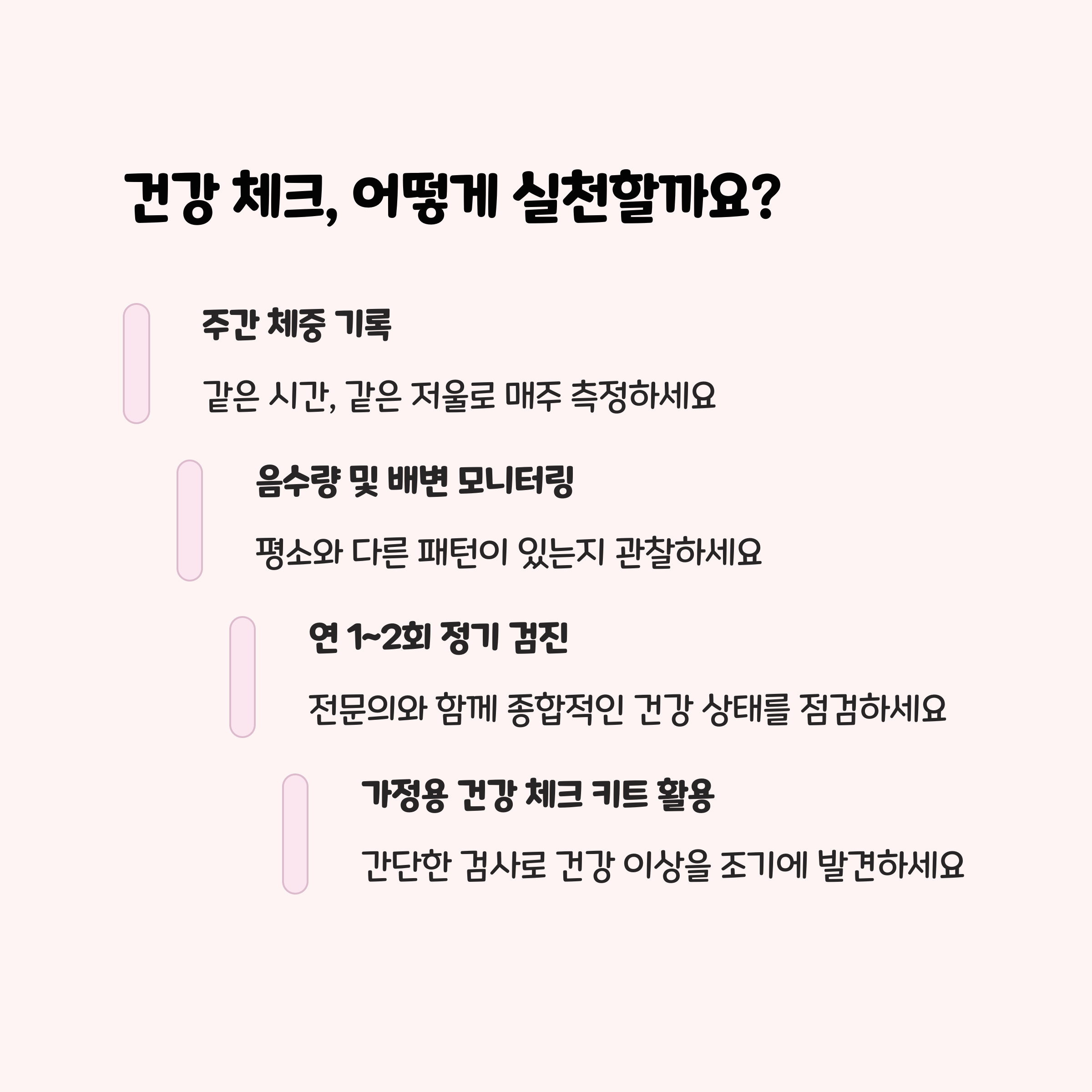 • 간단한 건강일지 앱이나 노트에 매일 상태를 기록해 두면, 이상 징후를 빠르게 발견할 수 있습니다.