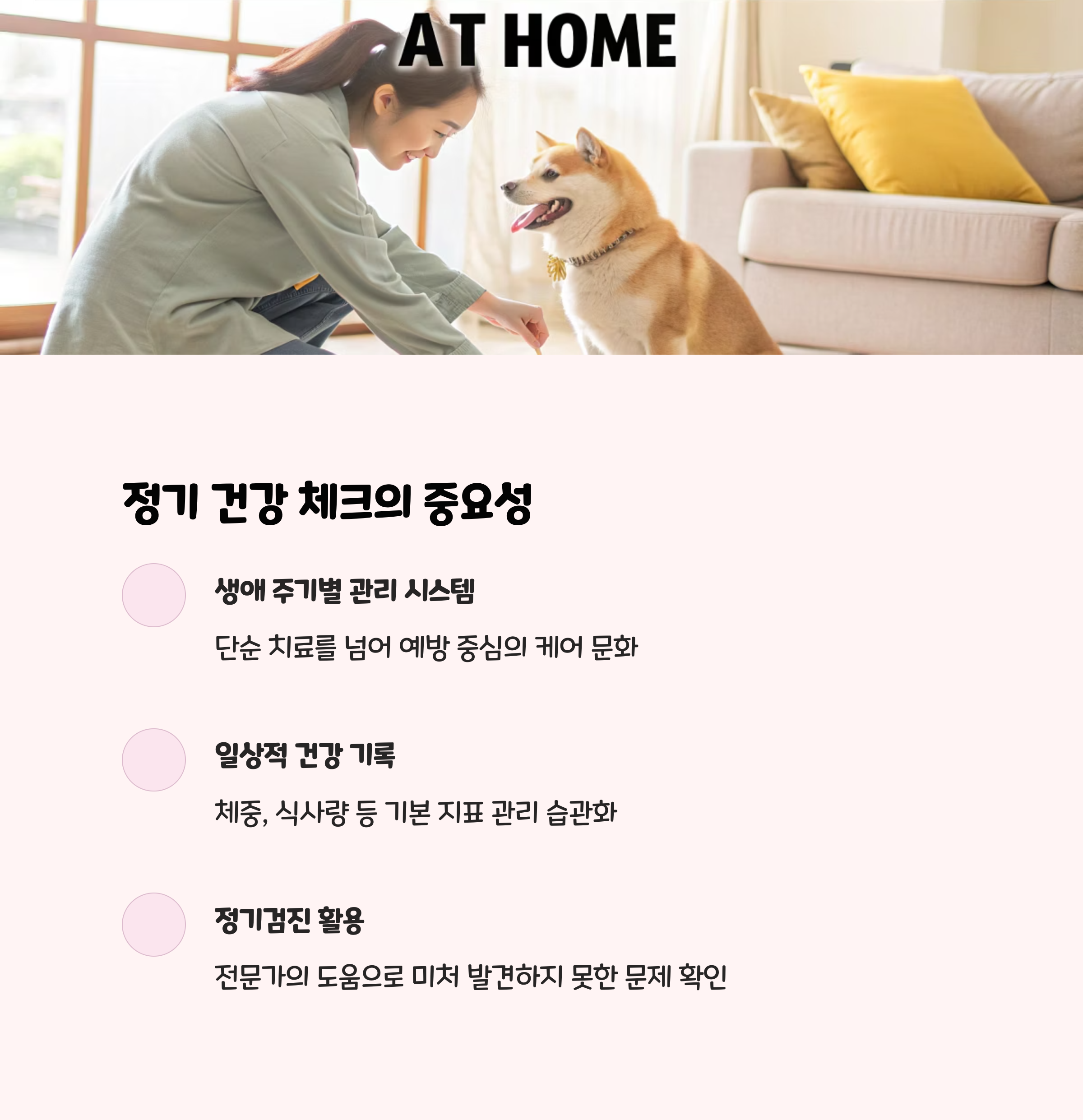 • 예방접종, 혈액검사, 구강검진 등 꼭 챙기세요!