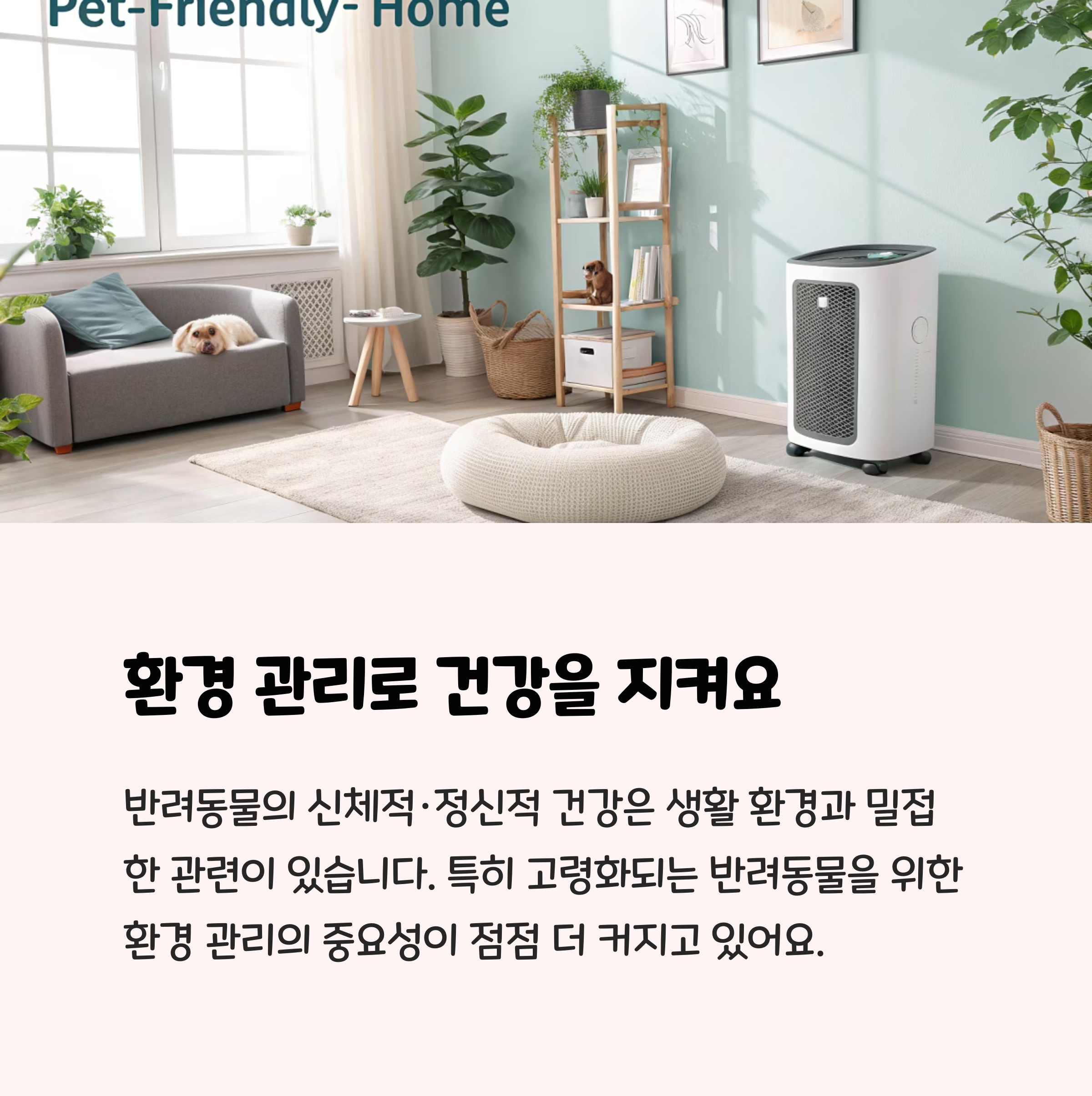집안 청결을 유지하고, 계절별로 온도·습도 조절, 해충 방지, 스트레스 완화 공간 마련 등을 실천하는 것이 좋습니다.
