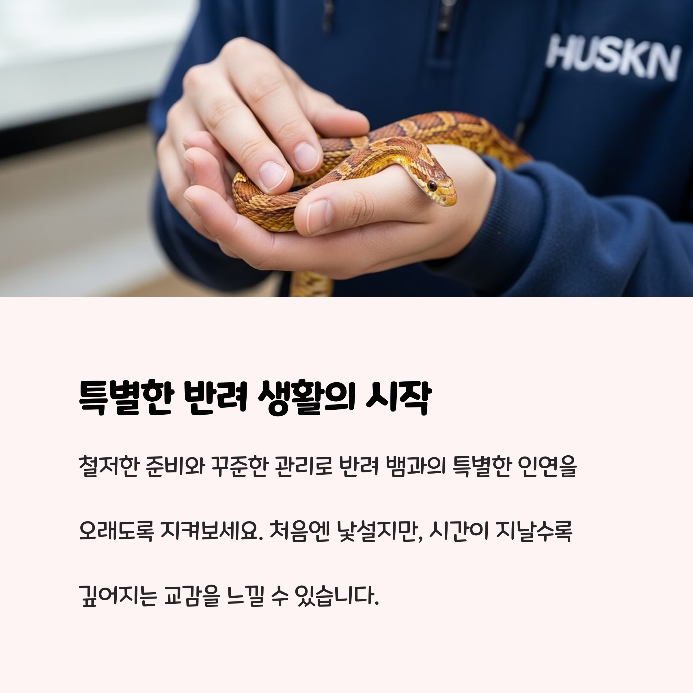 완벽한 사전 준비는 반려뱀의 건강과 오너의 만족도를 모두 높이는 최선의 방법입니다. 케이지·온습도 관리·먹이 급여·경제적 준비까지, 작은 실천이 오랜 신뢰와 사랑의 시작입니다. 꾸준히 환경을 점검하고, 뱀의 행동 및 건강을 유심히 살핀다면 특별한 경험을 만들어 갈 수 있을 것입니다.