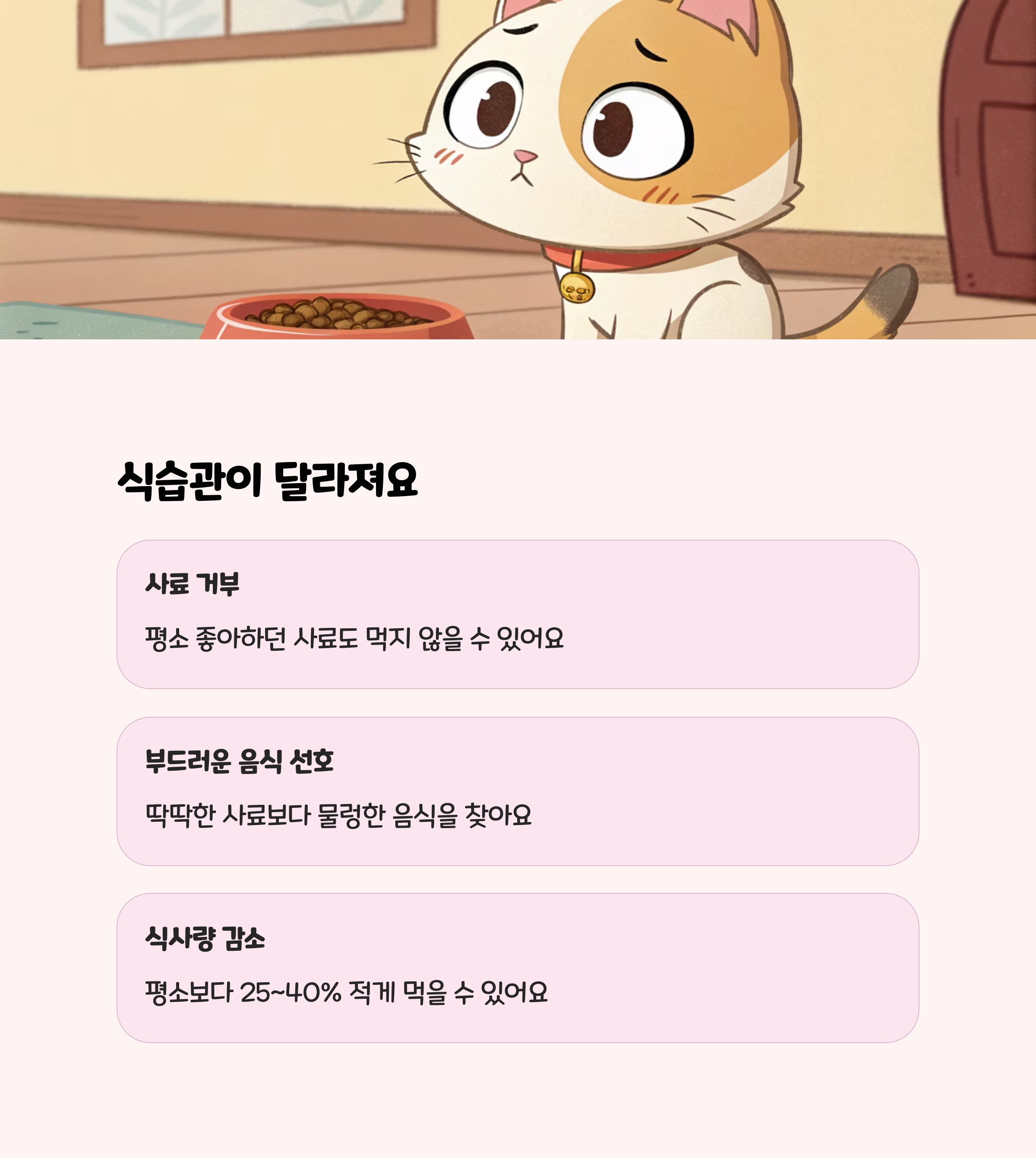 이갈이 중인 고양이가 사료를 잘 안 먹어요. 어떻게 해야 하나요?