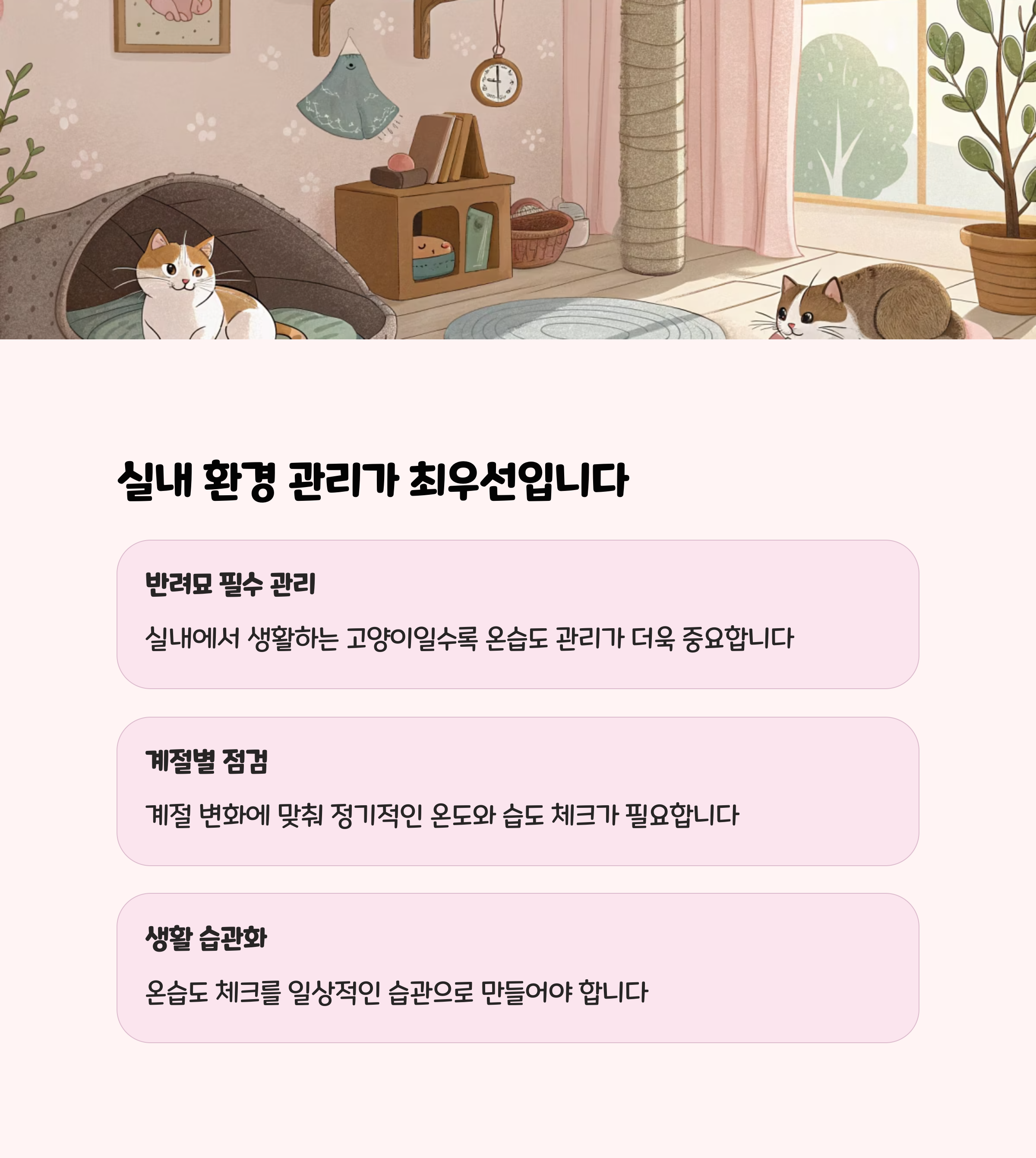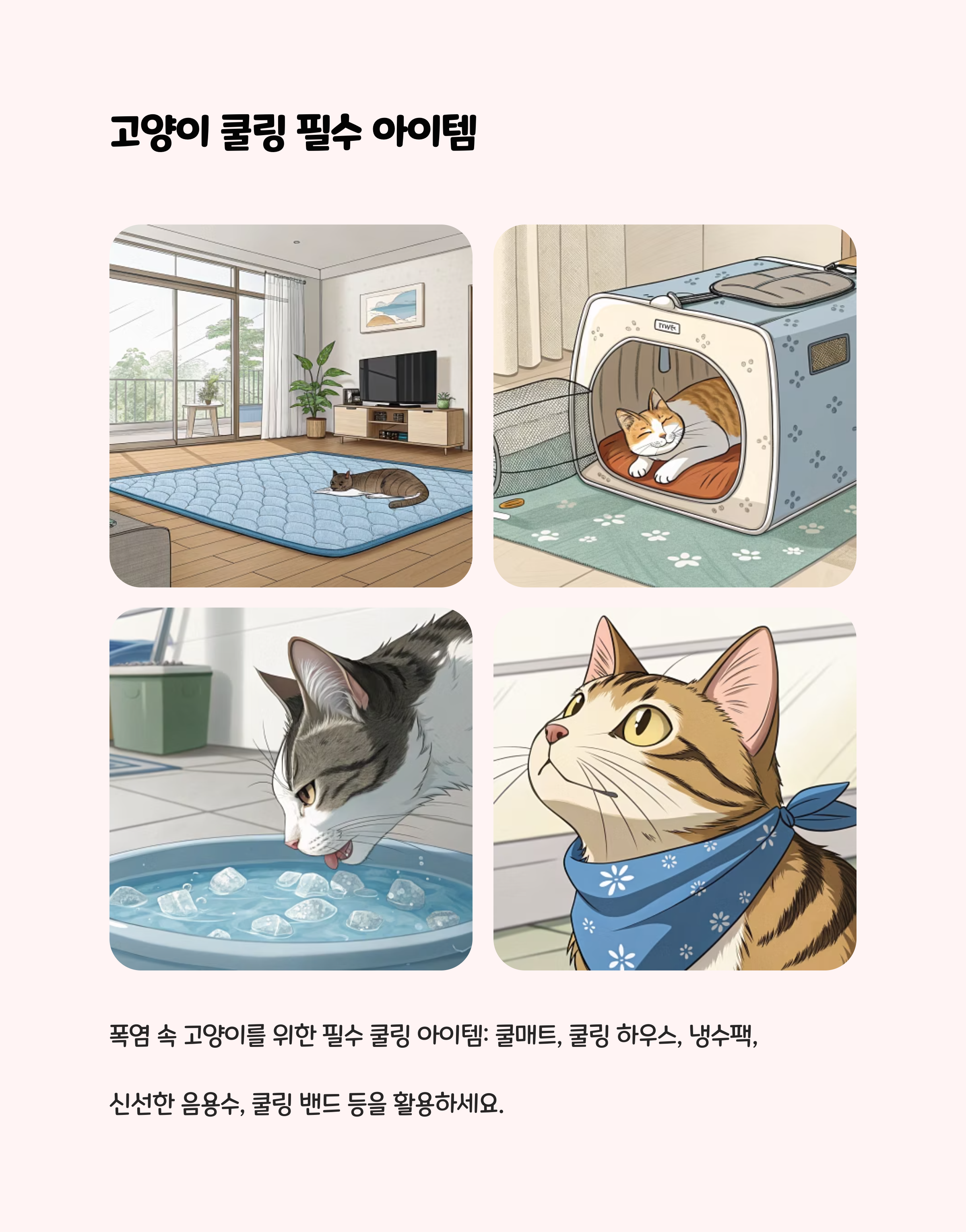 고양이 열사병은 예방이 최선입니다. 실내 온도와 습도를 꾸준히 관리하고, 수분과 쿨링 아이템을 적극적으로 활용하면 우리 고양이가 건강하게 여름을 날 수 있습니다. 오늘부터 실천해서, 사랑하는 반려묘와 안전하고 시원한 여름을 보내세요.