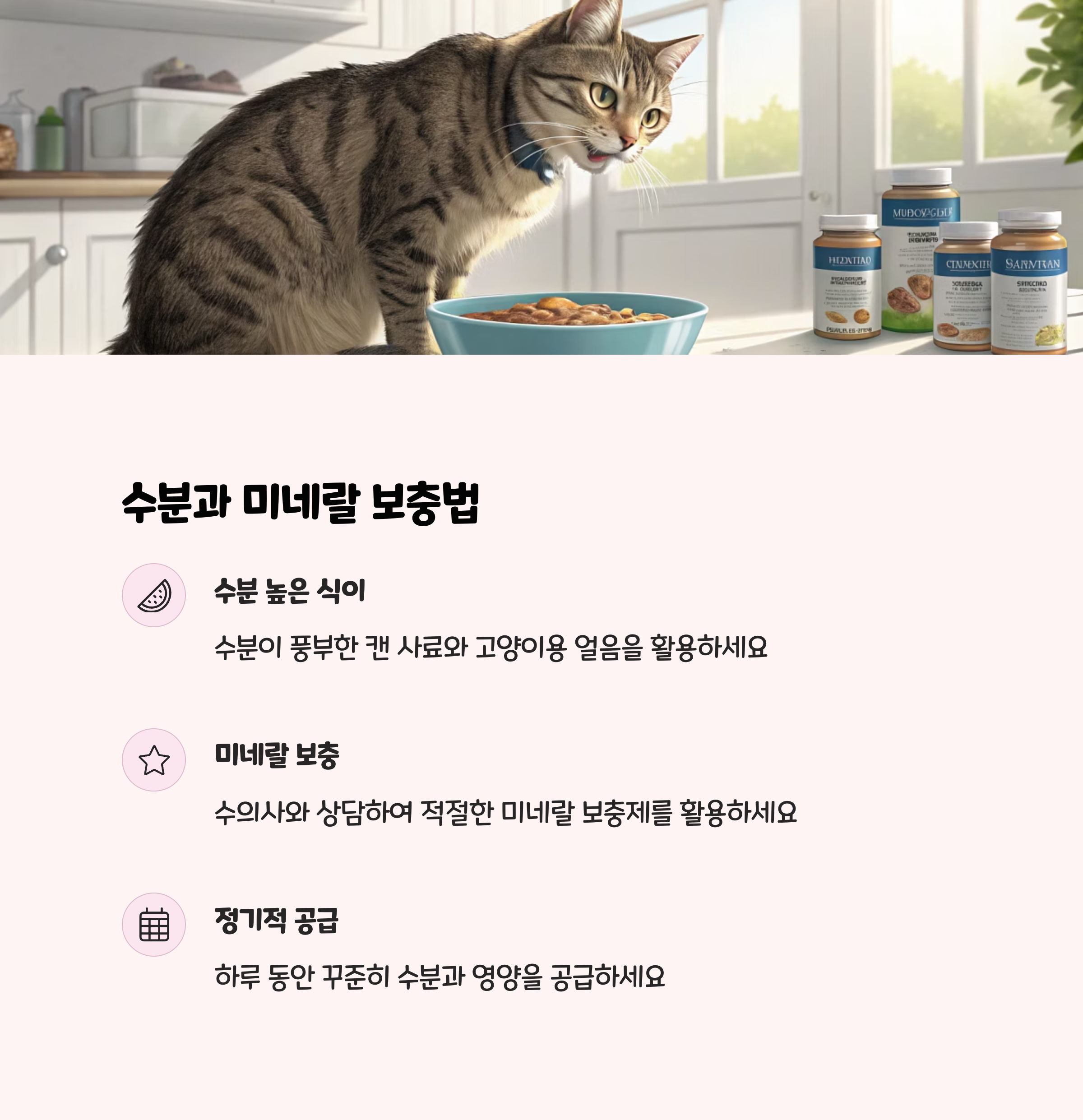 • 여러 방에 신선한 물그릇을 비치해 언제든 수분을 섭취할 수 있도록 하세요.