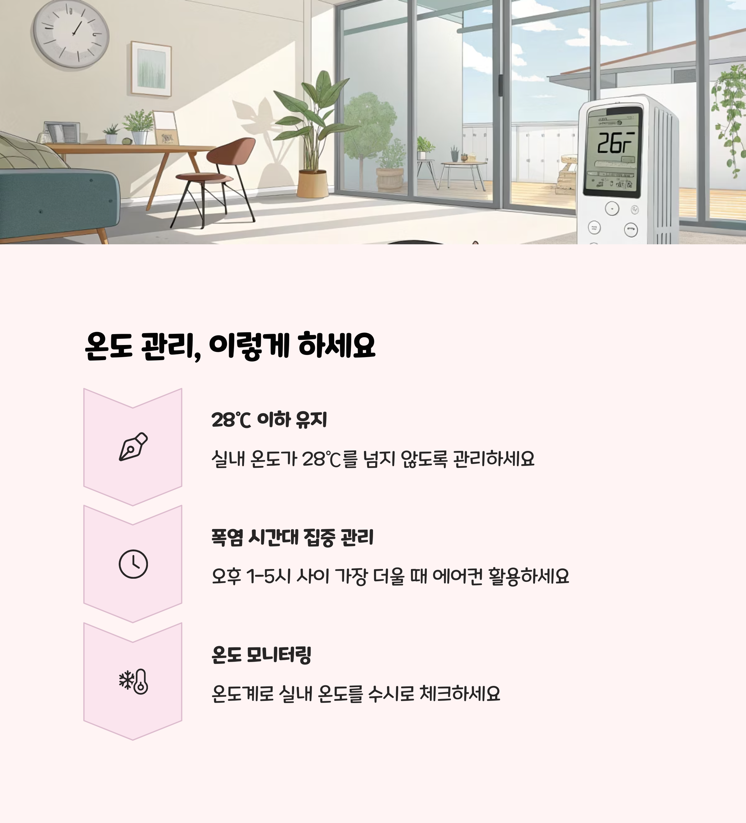 • 에어컨을 28~29도로 맞추면 열사병 예방과 전기세 절약을 동시에 할 수 있습니다.