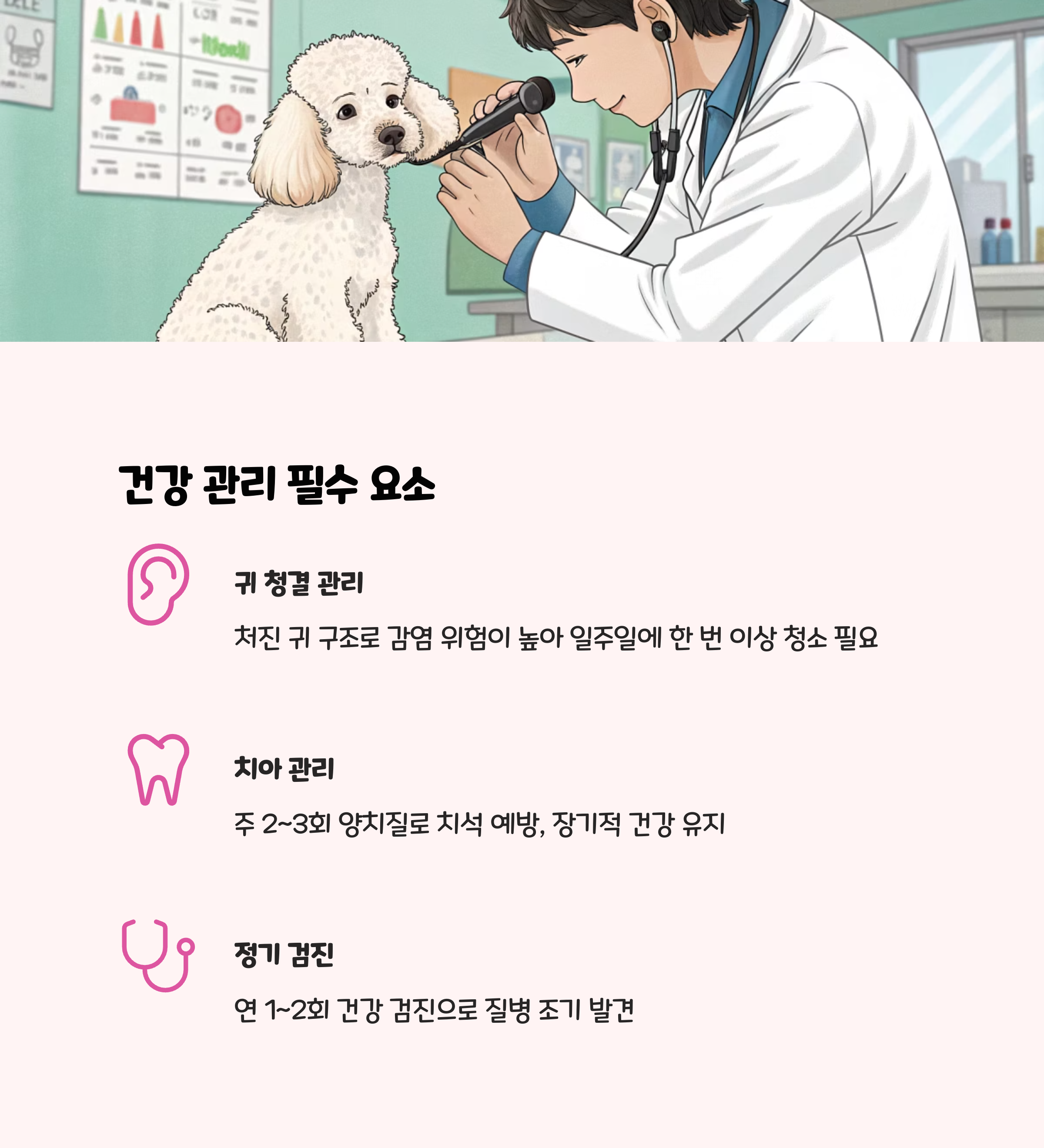 본 내용은 서울 강북 BK심장동물병원, 위키백과, 강아지분양 바크바크 등에서 제공한 푸들의 특징, 건강관리, 성격, 훈련, 털 관리 등 다양한 정보를 종합해 작성했습니다.