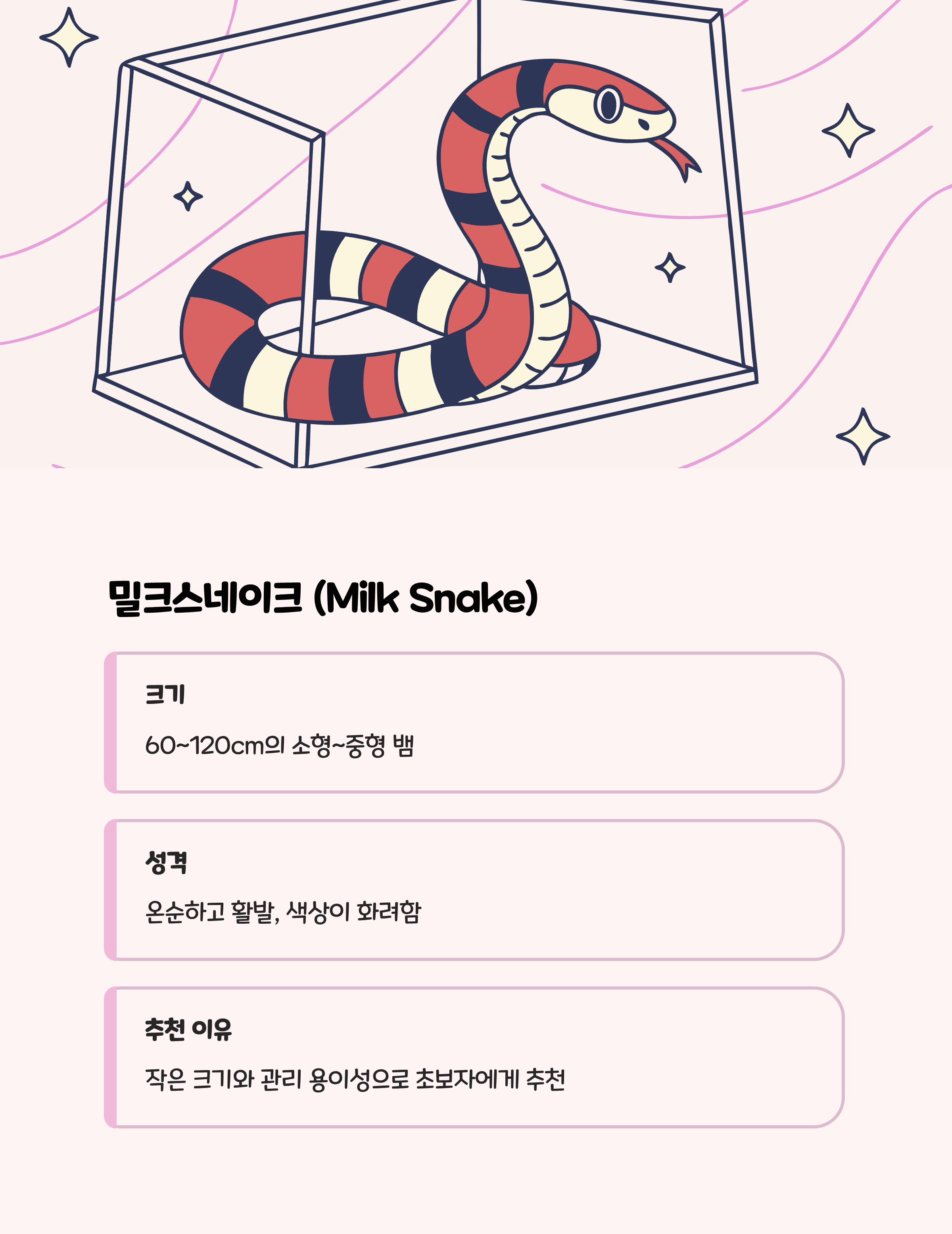 | 밀크스네이크 | 90~120 | 민감함, 관리 가능 | ★★★☆☆ |