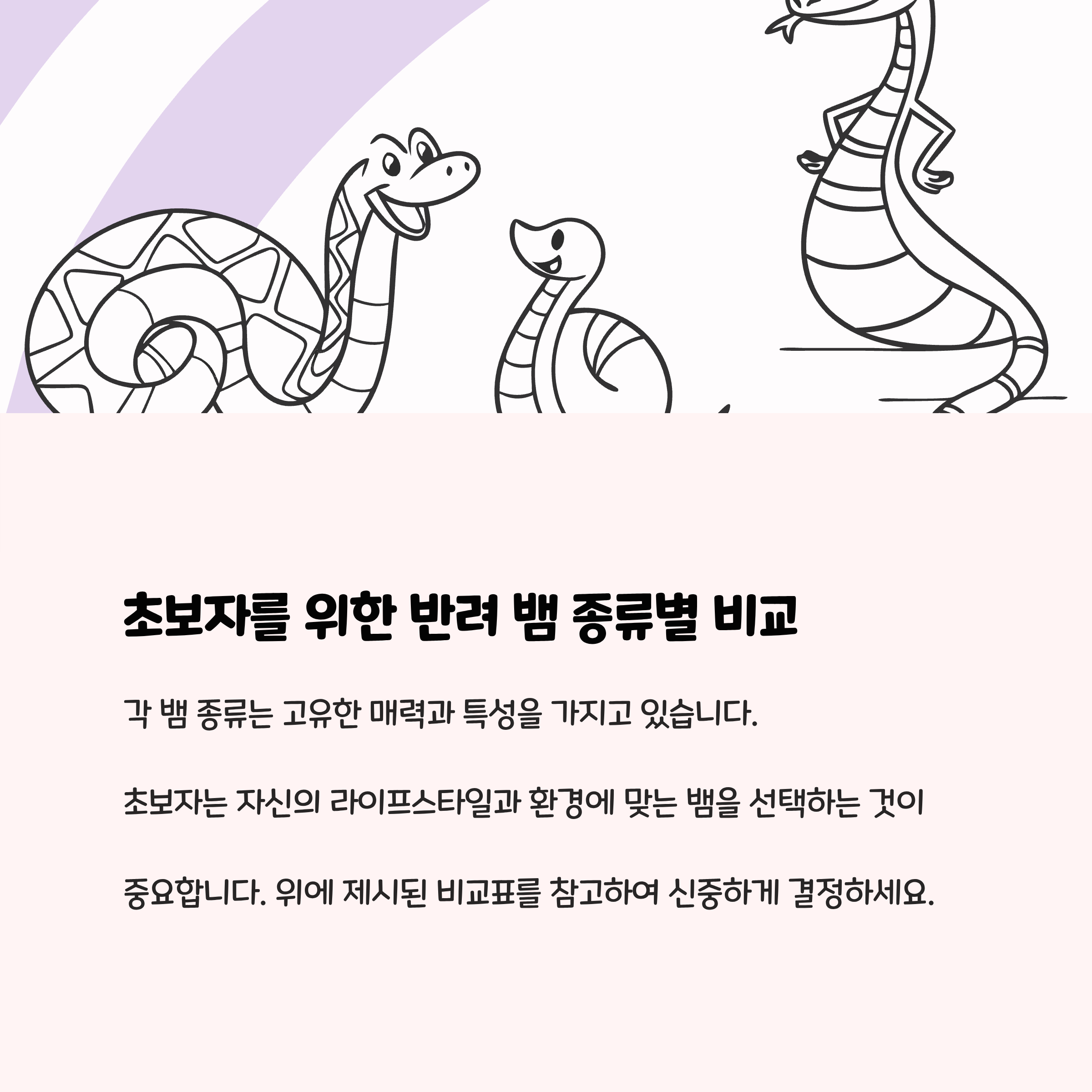 3. 초보자 친화적 무독성 반려 뱀 비교표