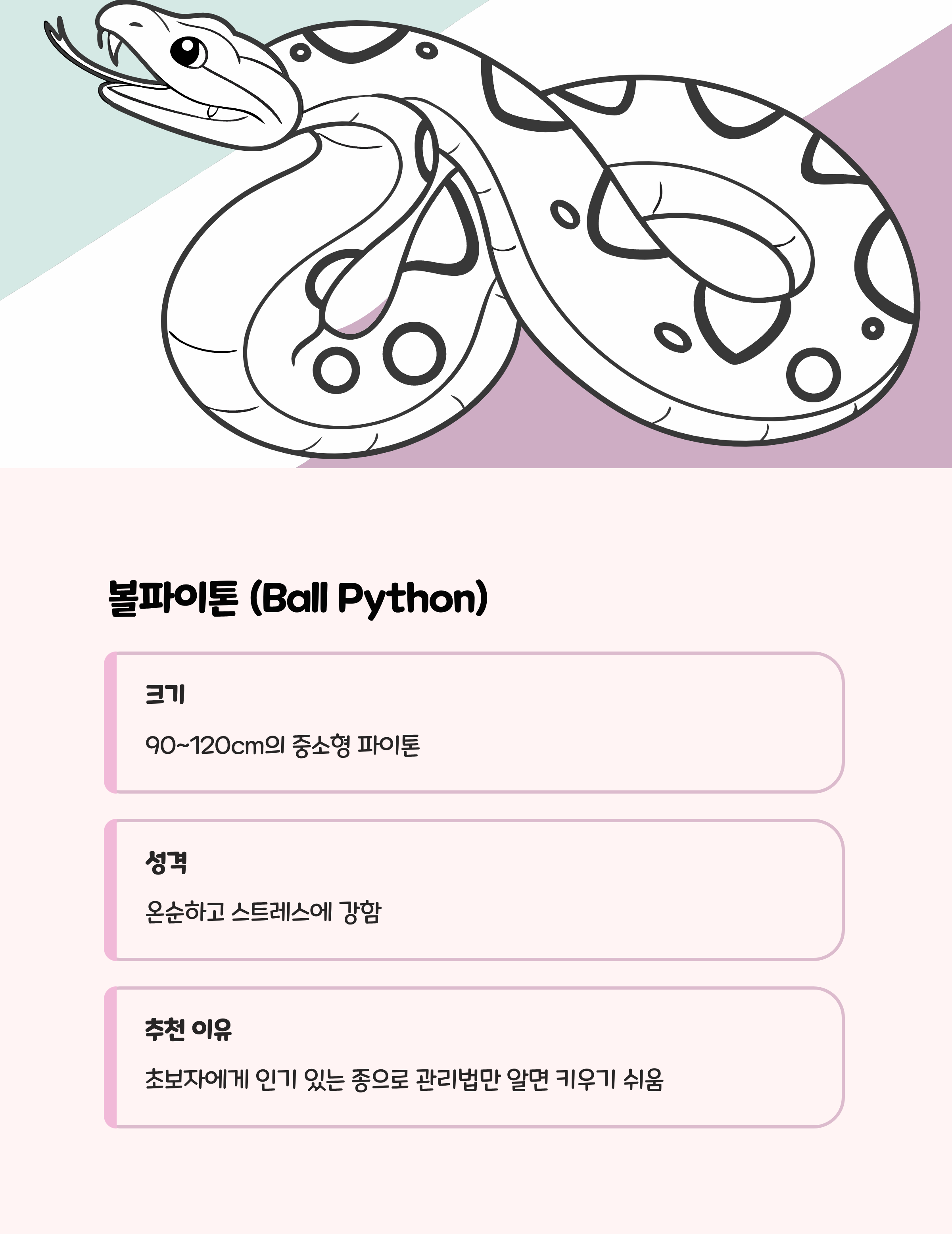 | 한국에서 인기 있는 입문용 뱀 종 비교와 추천 (1) | 2025.07.28 |