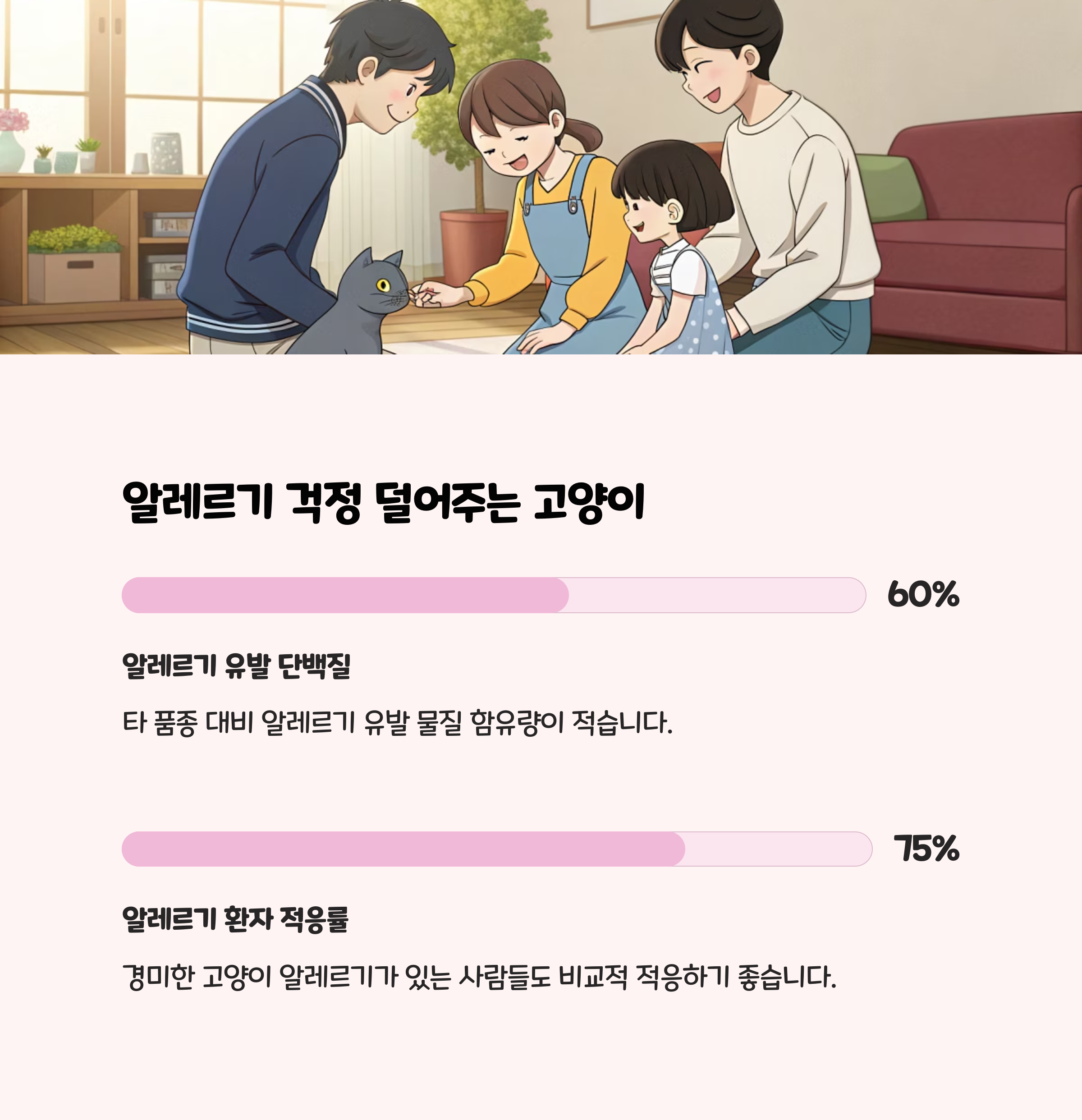 | 알레르기 유발 | Fel d 1 단백질 분비 적음, 저자극 품종 |