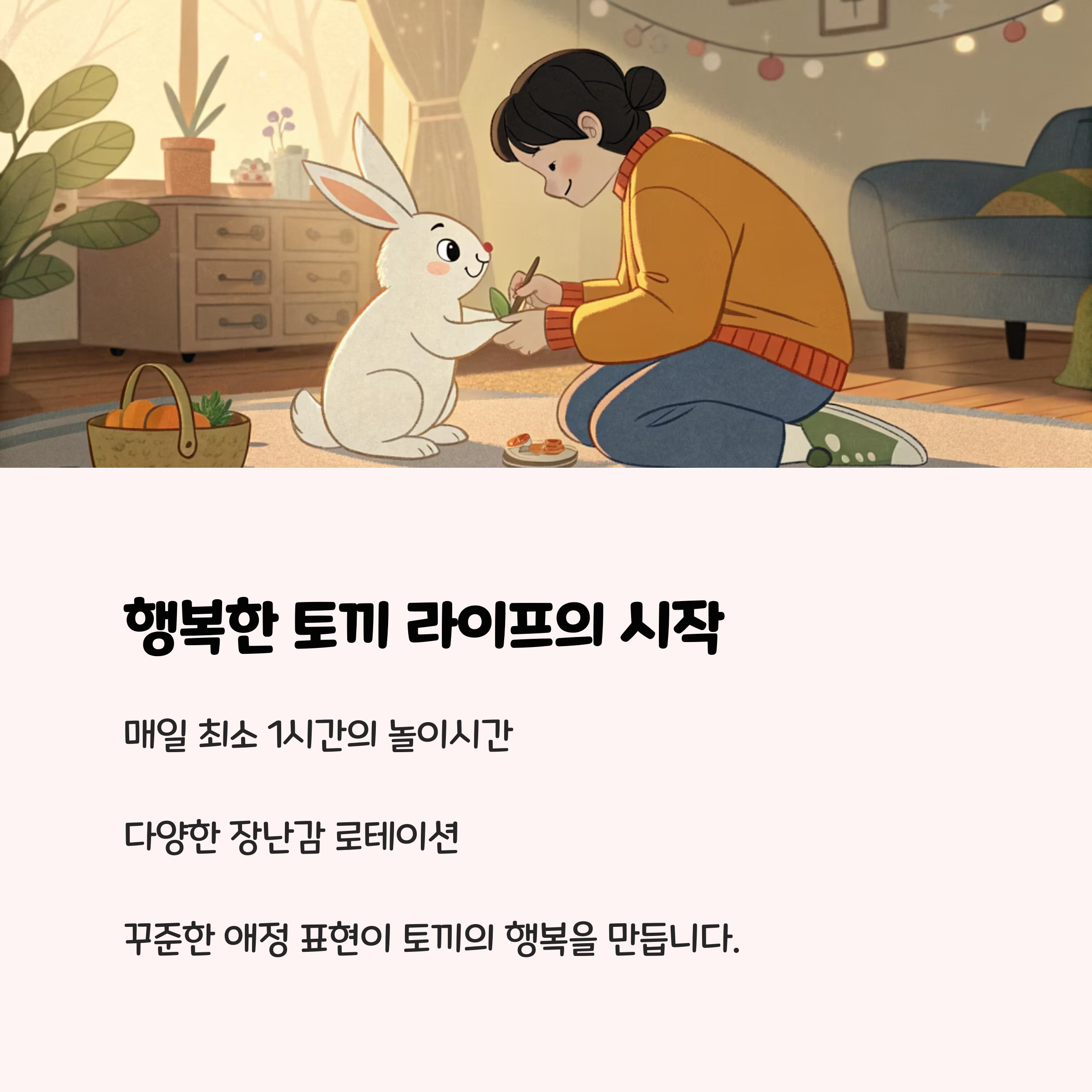 토끼는 섬세한 생명입니다. 충분한 정보와 준비만이 토끼와의 행복한 동거를 시작하는 첫걸음입니다. 위의 체크리스트와 준비물을 바탕으로, 여러분의 토끼가 건강하고 안전하게 새로운 가족이 될 수 있도록 꼼꼼히 준비해 보세요. 토끼와의 첫 만남이 소중한 추억이 되길 응원합니다!