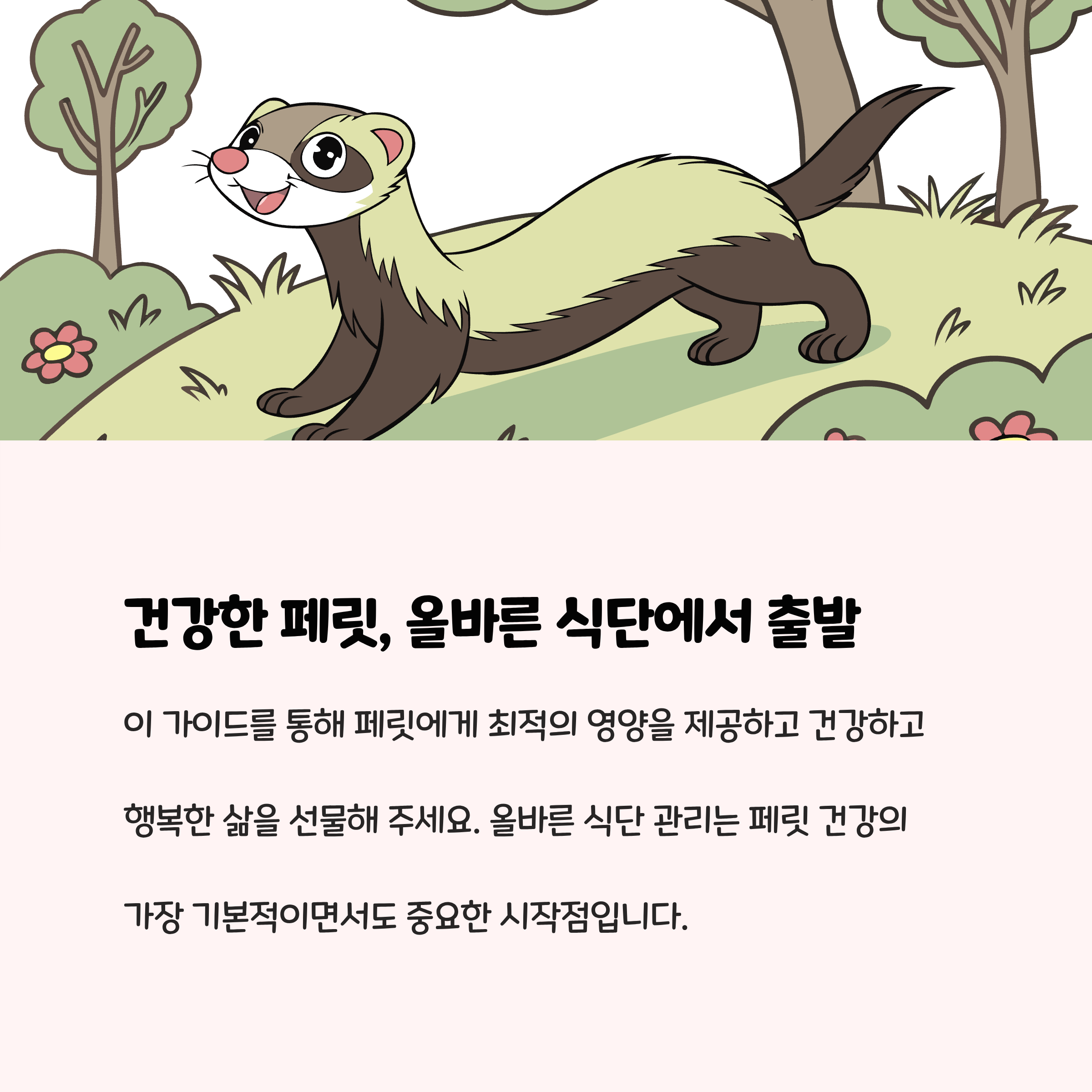 페릿의 건강과 행복은 올바른 식단 관리에서 시작됩니다. 신선한 사료와 안전한 간식 선택, 그리고 철저한 급여 관리는 우리 사랑하는 페릿을 오래도록 건강하게 지키는 가장 확실한 방법입니다. 처음에는 어렵게 느껴질 수 있지만, 이번 글에서 안내한 정보를 참고하여 꾸준히 실천해 보세요. 작은 관심과 정성이 쌓여 페릿의 활기찬 생활로 돌아올 것입니다.