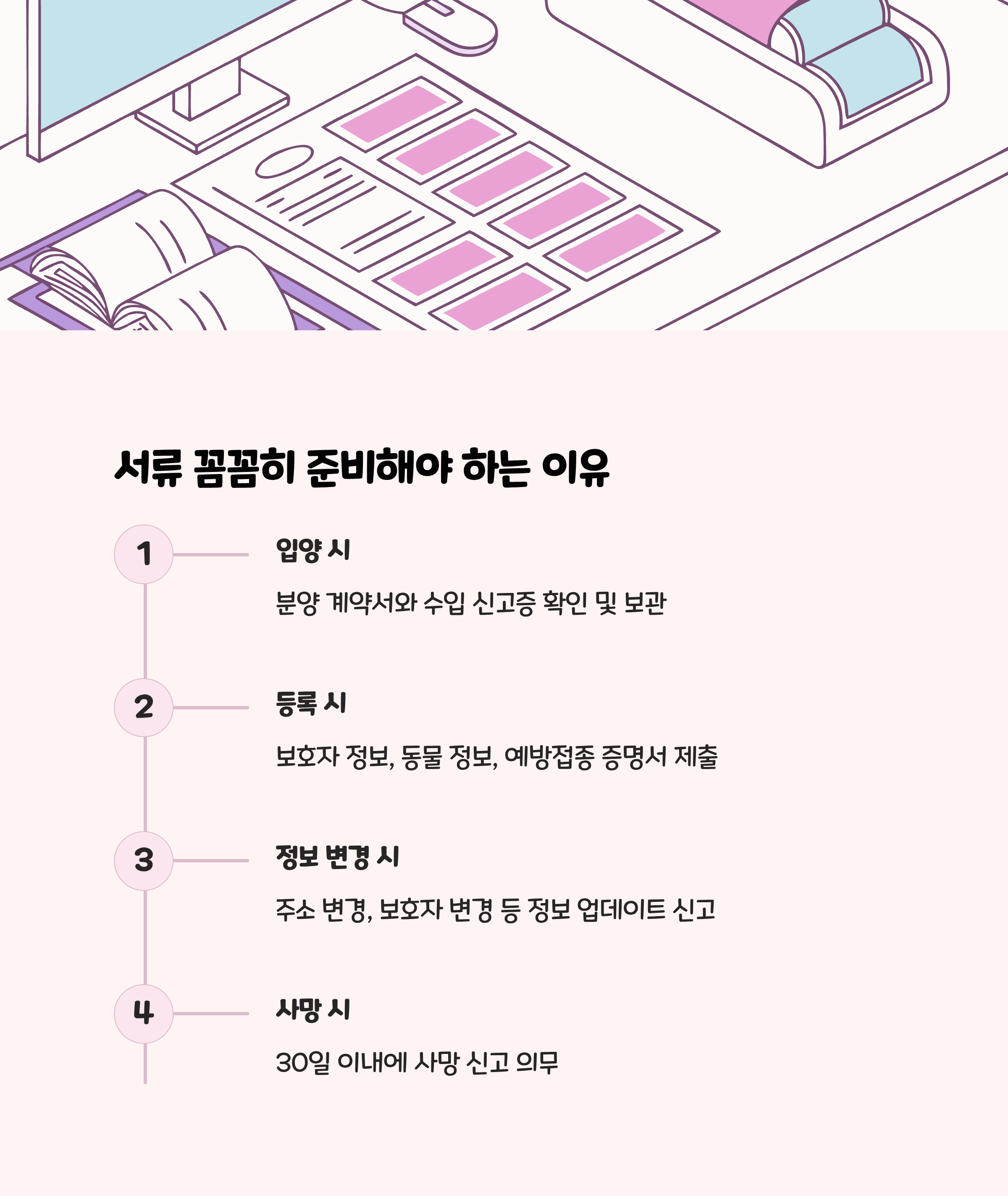 - 계약서상 개체번호·칩 번호·입양일자가 반드시 포함되어 있어야 합니다.