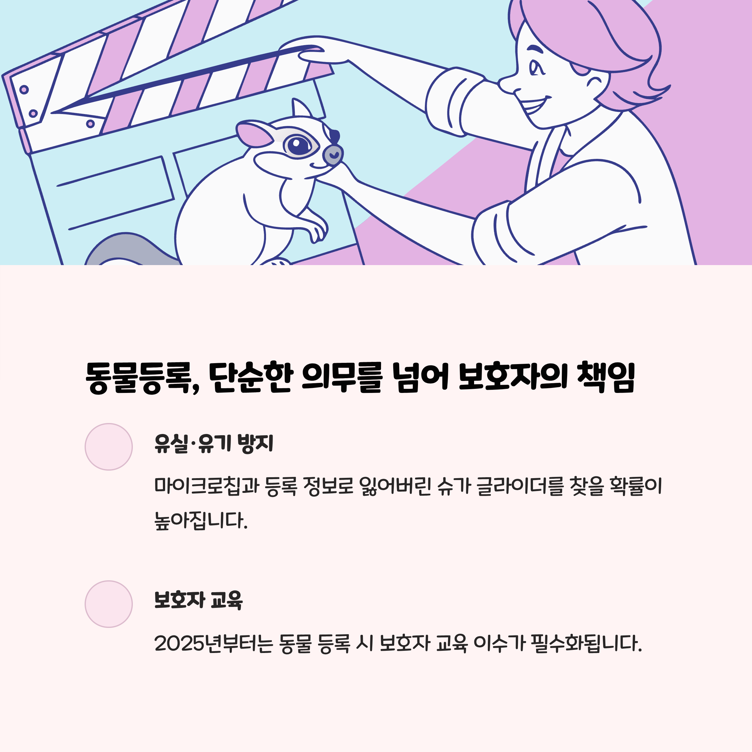 - 2025년 기준 반려동물 등록제가 한층 강화되어, 대부분의 반려포유류 역시 등록 의무가 논의 중입니다. (반려견, 반려묘 의무, 여타 소동물은 지자체/연도별 정책 변동 주시)
