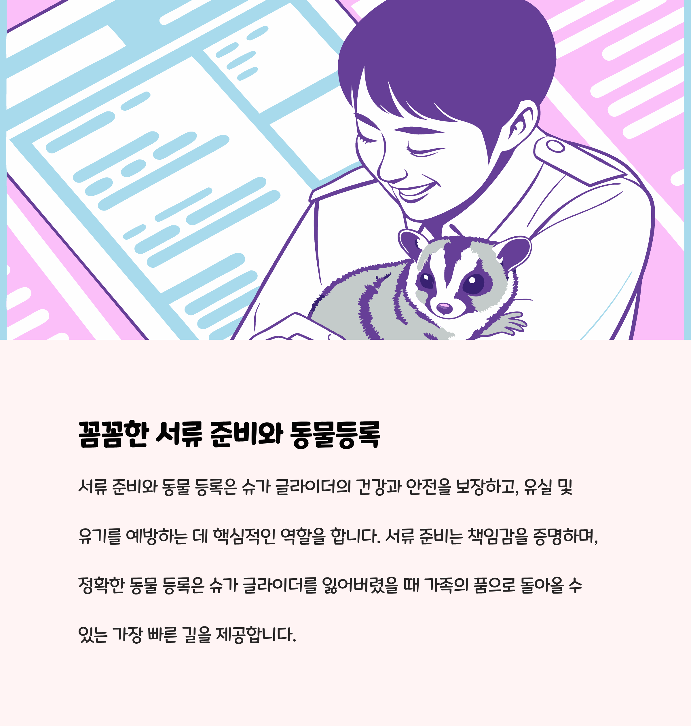슈가 글라이더를 합법적으로 키우기 위해서는 정확한 절차와 서류 준비가 필수입니다. 신뢰할 수 있는 분양처를 통해 입양하고, 지자체에 동물 등록을 꼼꼼히 진행해야 과태료 걱정 없이 안정적인 반려생활이 가능합니다. 철저한 준비와 관리로 귀여운 슈가 글라이더와 오래도록 건강하고 행복한 시간을 보내시길 바랍니다.
