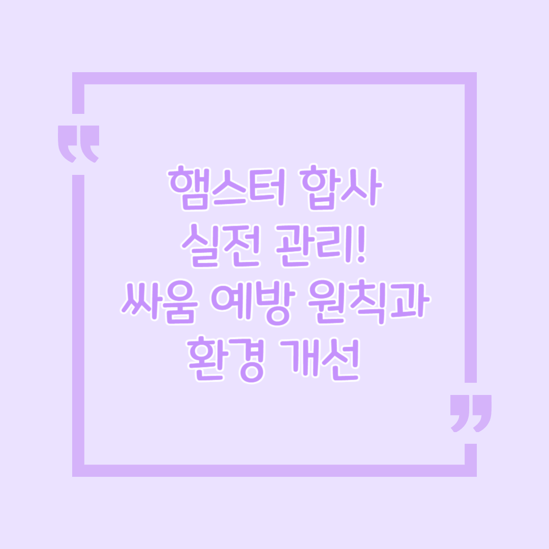 완벽한 합사를 위해서는 작은 환경 변화와 세심한 관찰이 무엇보다 중요하다고 할 수 있습니다. 오늘 소개해드린 주요 관리법을 참고하신다면, 사랑스러운 햄스터가 더욱 건강하고 행복하게 지낼 수 있는 환경을 마련하실 수 있습니다.